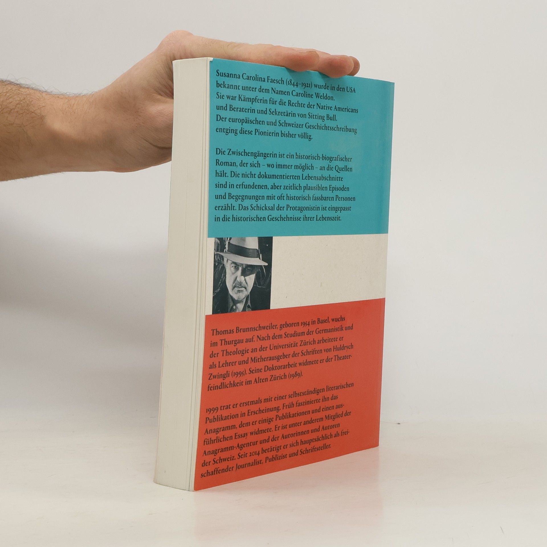 Unter dem Namen Caroline Weldon wurde Susanna Carolina Faesch in den USA bekannt als Kämpferin für die Rechte der Native Americans und als Beraterin und Sekretärin von Sitting Bull. Der europäischen und Schweizer Geschichtsschreibung entging diese Pionierin bisher völlig. «Die Zwischengängerin» ist ein historischbiografischer Roman, der sich – wo immer möglich – an die Quellen hält. Die nicht dokumentierten Zeiten sind in erfundenen, aber zeitlich plausiblen Episoden und Begegnungen mit oft historisch fassbaren Personen erzählt. Das Schicksal von Caroline ist eingepasst in die historischen Geschehnisse ihrer Lebenszeit.