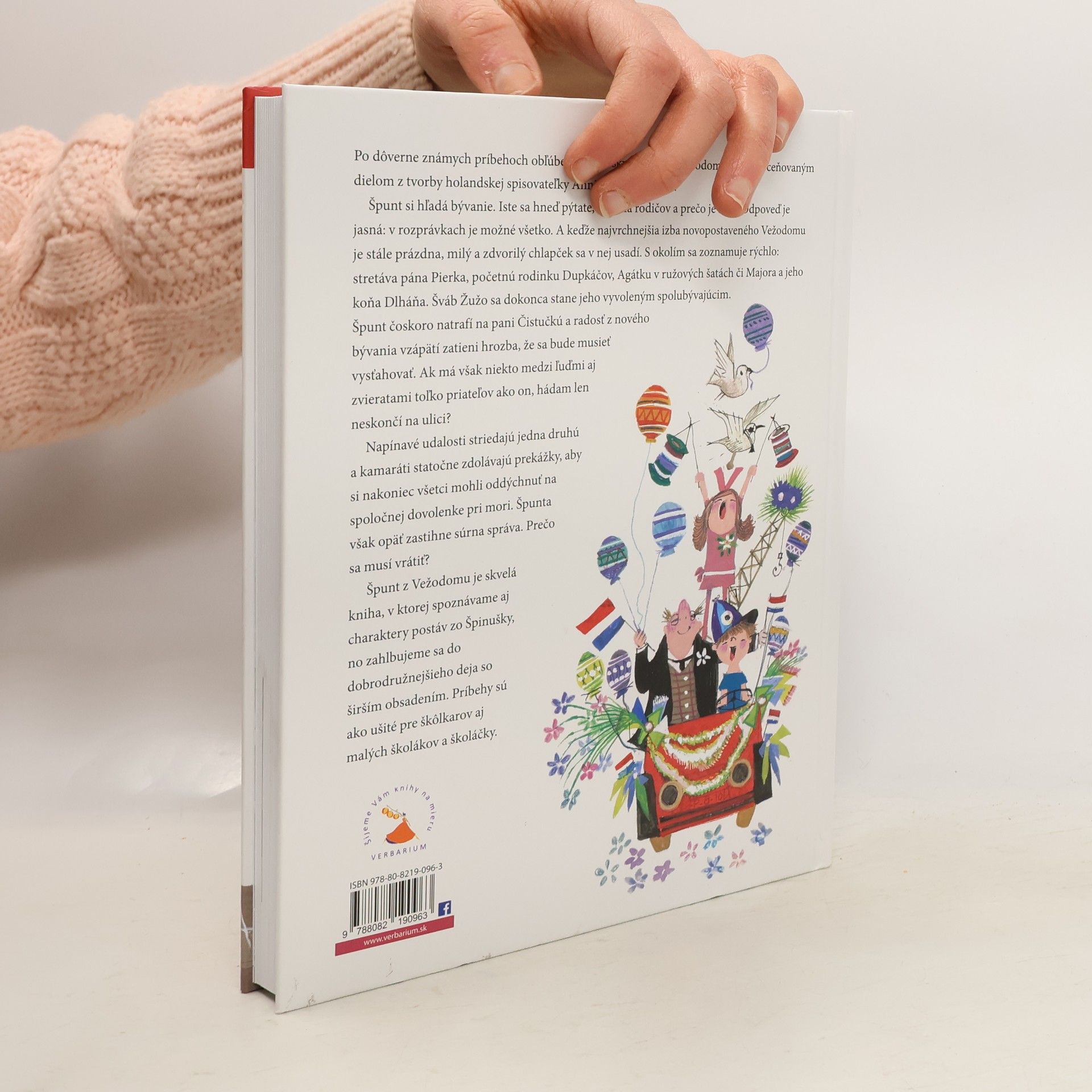 Po dôverne známych príbehoch obľúbenej Špinušky prichádza ďalšie oceňované dielo holandskej poetky a spisovateľky Annie M. G. Schmidt. Hlavný hrdina, chlapček Špunt, si hľadá bývanie. Odpoveď na otázku, kde má rodičov, je jednoduchá: v rozprávkach je možné všetko. Keďže najvrchnejšia izba novopostaveného Vežodomu je prázdna, usadí sa tam. Rýchlo sa zoznamuje s okolím, stretáva rôzne postavy, ako pána Pierka, rodinku Dupkáčov či Majora s koňom Dlháňom, a dokonca sa spriatelí so švábom Žužom. Jeho neobvyklé nápady však nie sú vždy vítané, čo vedie k stretnutiu s pani Čistučkou a hrozbe vysťahovania. Napriek tomu, že má množstvo priateľov, situácia sa komplikuje. Napínavé udalosti sa striedajú a kamaráti prekonávajú prekážky, aby si napokon užili spoločnú dovolenku pri mori. Ale Špunta opäť zastihne súrna správa, ktorá ho núti vrátiť sa. Príbehy, aj keď písané pred mnohými rokmi, stále oslovujú nové generácie čitateľov, sú plné humoru a podnecujú dospelých k zamysleniu nad ich pohľadom na život. Špunt z Vežodomu je skvelá kniha, ktorá ponúka dobrodružnejší dej a širšie obsadenie, pričom je ideálna pre škôlkarov a malých školákov. Smejme sa a žasnime spolu s odvážnym hrdinom!