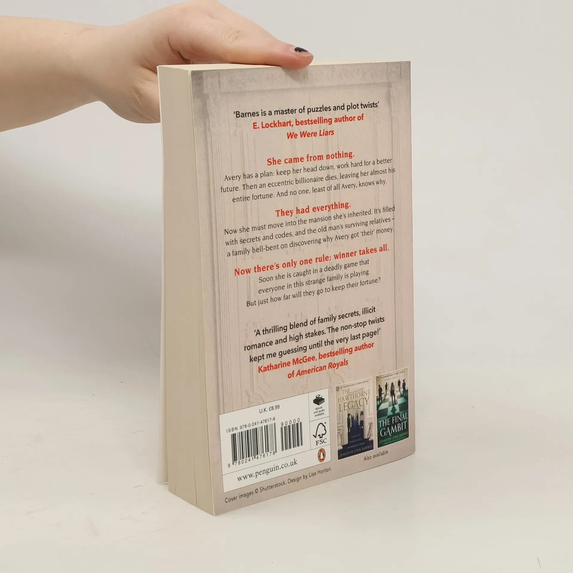 She came from nothing. Avery has a plan- keep her head down, work hard for a better future. Then an eccentric billionaire dies, leaving her almost his entire fortune. And no one, least of all Avery, knows why. They had everything. Now she must move into the mansion she's inherited. It's filled with secrets and codes, and the old man's surviving relatives - a family hell-bent on discovering why Avery got 'their' money. Now there's only one rule- winner takes all. Soon she is caught in a deadly game that everyone in this strange family is playing.But just how far will they go to keep their fortune?