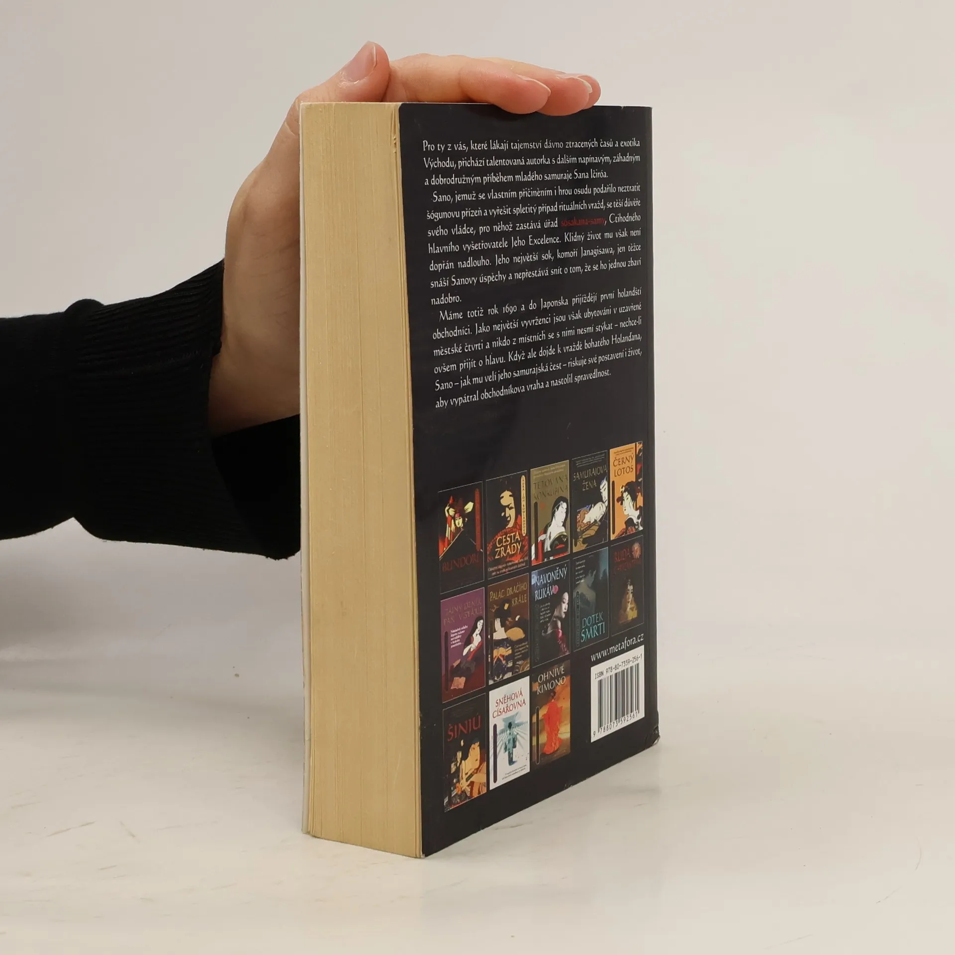 Statečný japonský samuraj pátrá po nemilosrdném vrahovi… Pro ty z vás, které lákají tajemství dávno ztracených časů a exotika Východu, přichází talentovaná autorka s dalším napínavým, záhadným a dobrodružným příběhem mladého samuraje Sana Ičiró. Sano, jemuž se povedlo neztratit šógunovu přízeň a vyřešit spletitý případ rituálních vražd, se těší přízni svého vládce, pro něhož zastává úřad Ctihodného hlavního vyšetřovatele Jeho Excelence. Klidný život mu však není dopřán nadlouho. Máme totiž rok 1690 a do Japonska přijíždějí první holandští obchodníci. Jako největší vyvrženci jsou však ubytováni v uzavřené městské čtvrti a nikdo z místních se s nimi nesmí stýkat - nechce-li ovšem přijít o hlavu. Když ale dojde k vraždě bohatého Holanďana, Sano - jak mu velí jeho samurajská čest - riskuje své postavení i život, aby vypátral obchodníkova vraha a nastolil spravedlnost.