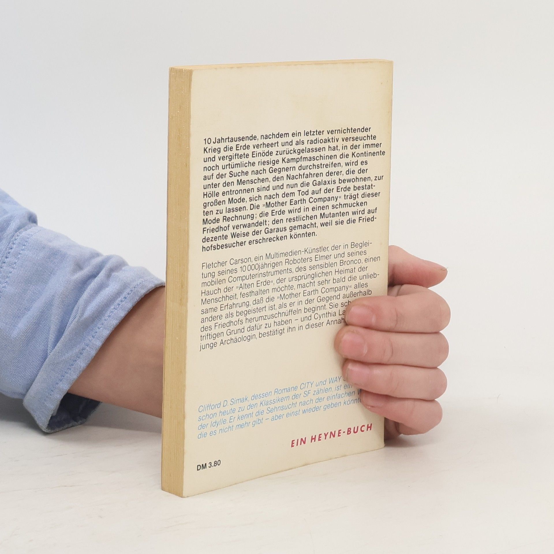 10 Jahrtausende, nachdem ein letzter vernichtender Krieg die Erde verheert und als radioaktiv verseuchte und vergiftete Einöde zurückgelassen hat, in der immer noch urtümliche riesige Kampfmaschinen die Kontinente auf der Suche nach Gegnern durchstreifen, wird es unter den Menschen, den Nachfahren derer, die der Höllen entronnen sind und nun die Galaxis bewohnen, zur großen Mode, sich nach dem Tod auf der Erde bestatten zu lassen. Die "Mother Earth Company" trägt dieser Mode Rechnung; die Erde wird in einen schmucken Friedhof verwandelt; den restlichen Mutanten wird auf dezente Weise der Garaus gemacht, weil sie den Friedhofsbesucher erschrecken könnten. Fletcher Carson, ein Multimedien-Künstler, der in Begleitung seines 10 000jährigen Roboters Elmer und seines mobilen Computerinstruments, des sensiblen Bronco, einen Hauch der "Alten Erde", der ursprünglichen Heimat der Menschheit, festhalten möchte, macht sehr bald die unliebsame Erfahrung, dass die "Mother Earth Company" alles andere als begeistert ist, als er in der Gegend außerhalb des Friedhofs herumzuschnüffeln beginnt. Sie scheint einen triftigen Grund dafür zu haben - und Cynthia Lansing, die junge Archäologin, bestätigt ihn in dieser Annahme.
