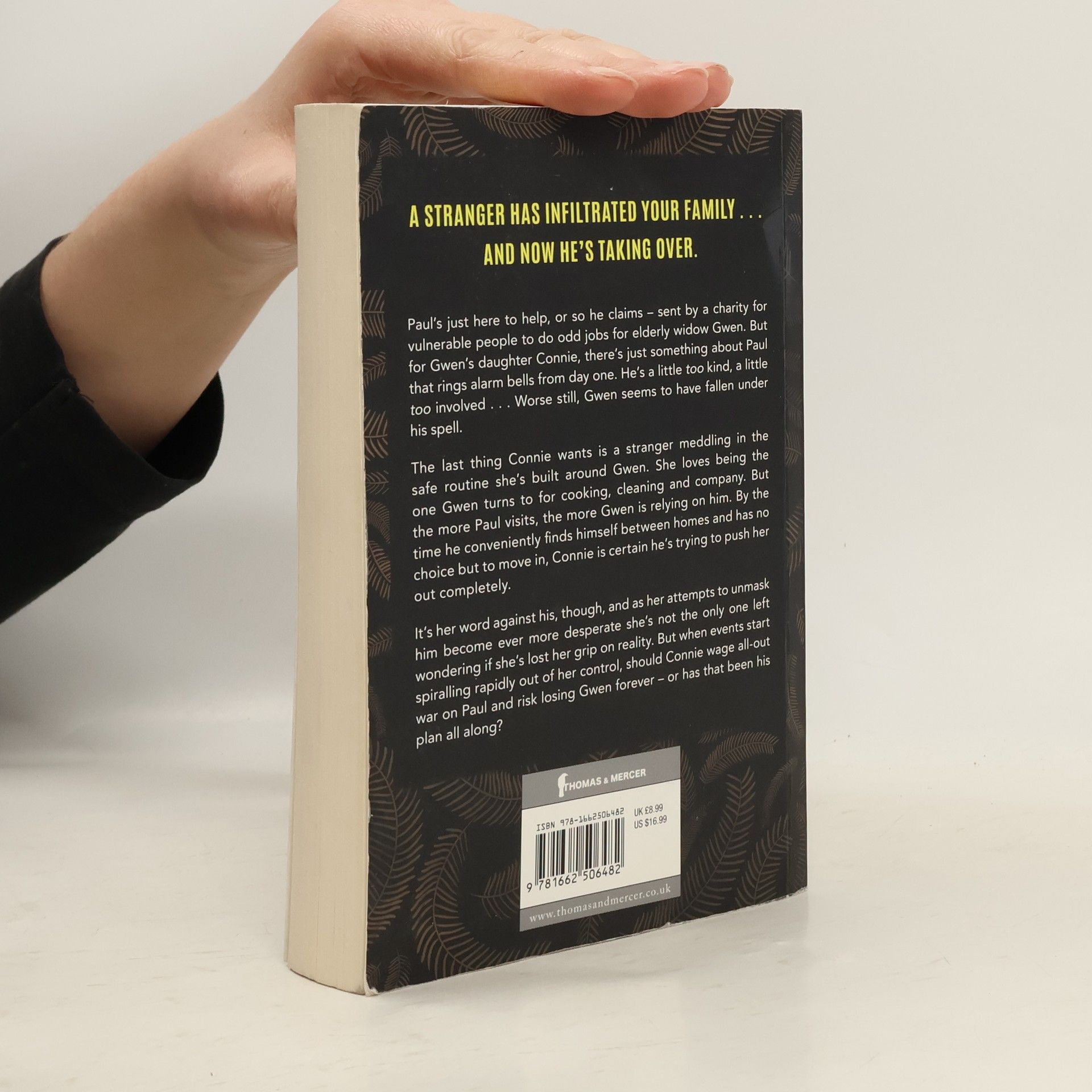 "A proper twisty thriller."--Sarah Pinborough A stranger has infiltrated your family...and now he's taking over. Paul's just here to help, or so he claims--sent by a charity for vulnerable people to do odd jobs for elderly widow Gwen. But for Gwen's daughter Connie, there's just something about Paul that rings alarm bells from day one. He's a little too kind, a little too involved...Worse still, Gwen seems to have fallen under his spell. The last thing Connie wants is a stranger meddling in the safe routine she's built around Gwen. She loves being the one Gwen turns to for cooking, cleaning and company. But the more Paul visits, the more Gwen is relying on him. By the time he conveniently finds himself between homes and has no choice but to move in, Connie is certain he's trying to push her out completely. It's her word against his, though, and as her attempts to unmask him become ever more desperate she's not the only one left wondering if she's lost her grip on reality. But when events start spiralling rapidly out of her control, should Connie wage all-out war on Paul and risk losing Gwen forever--or has that been his plan all along?