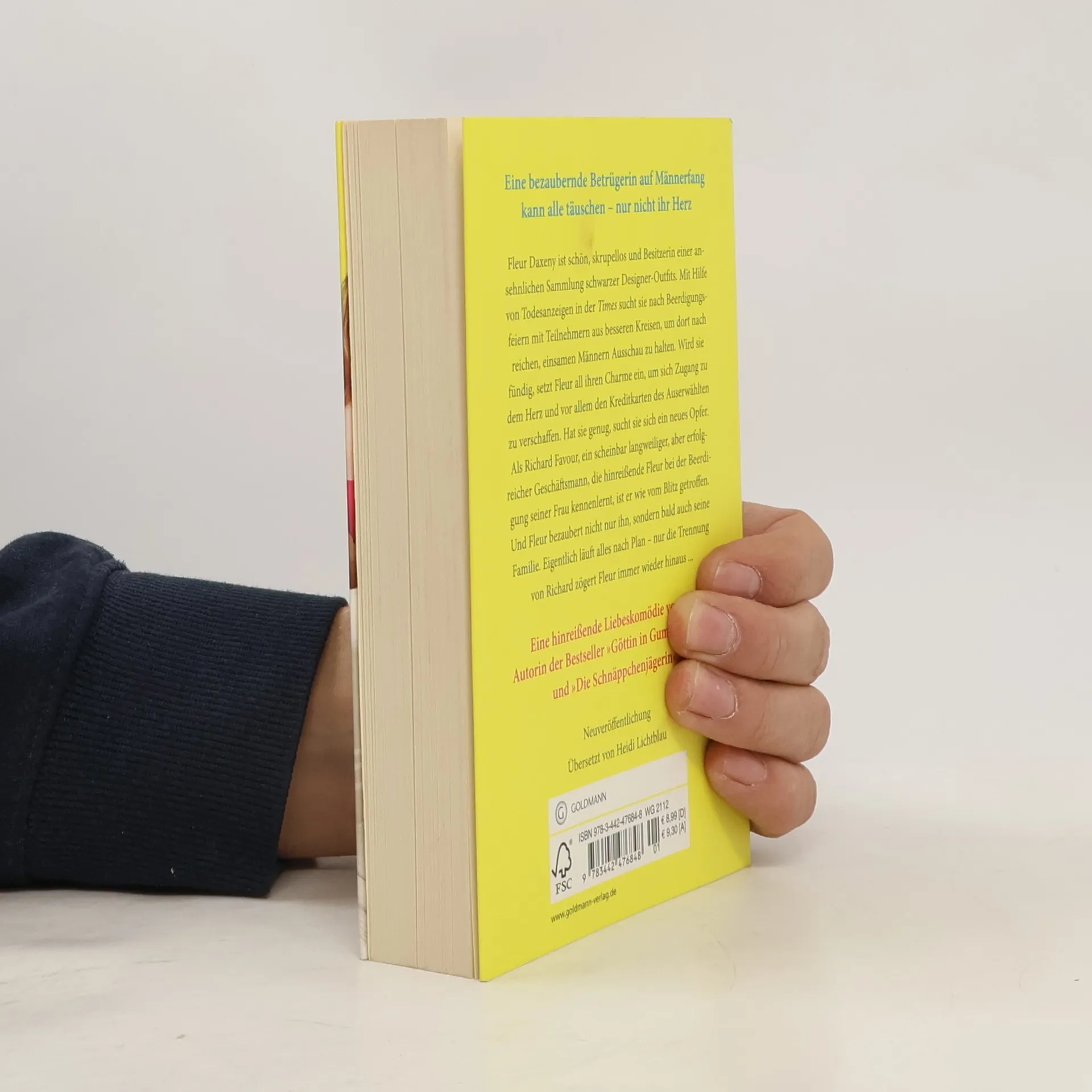 Eine bezaubernde Betrügerin auf Männerfang kann alle täuschen – nur nicht ihr Herz Fleur Daxeny ist schön, skrupellos und verfügt über eine ansehnliche Sammlung schwarzer Designer-Outfits. Mit Hilfe von Todesanzeigen in der Times sucht sie nach Beerdigungsfeiern mit Teilnehmern aus besseren Kreisen, um dort nach reichen, einsamen Männern Ausschau zu halten. Mit ihrem unwiderstehlichen Charme erschleicht sich Fleur Zugang zu deren Herz und Kreditkarten. Hat sie genug, sucht sie sich ein neues Opfer. Als Richard Favour, ein scheinbar langweiliger, aber erfolgreicher Geschäftsmann, die hinreißende Fleur bei der Beerdigung seiner Frau kennenlernt, ist er wie vom Blitz getroffen. Und Fleur bezaubert nach und nach nicht nur ihn, sondern auch seine Familie. Eigentlich läuft alles nach Plan – nur die Trennung von Richard zögert Fleur immer wieder hinaus ...