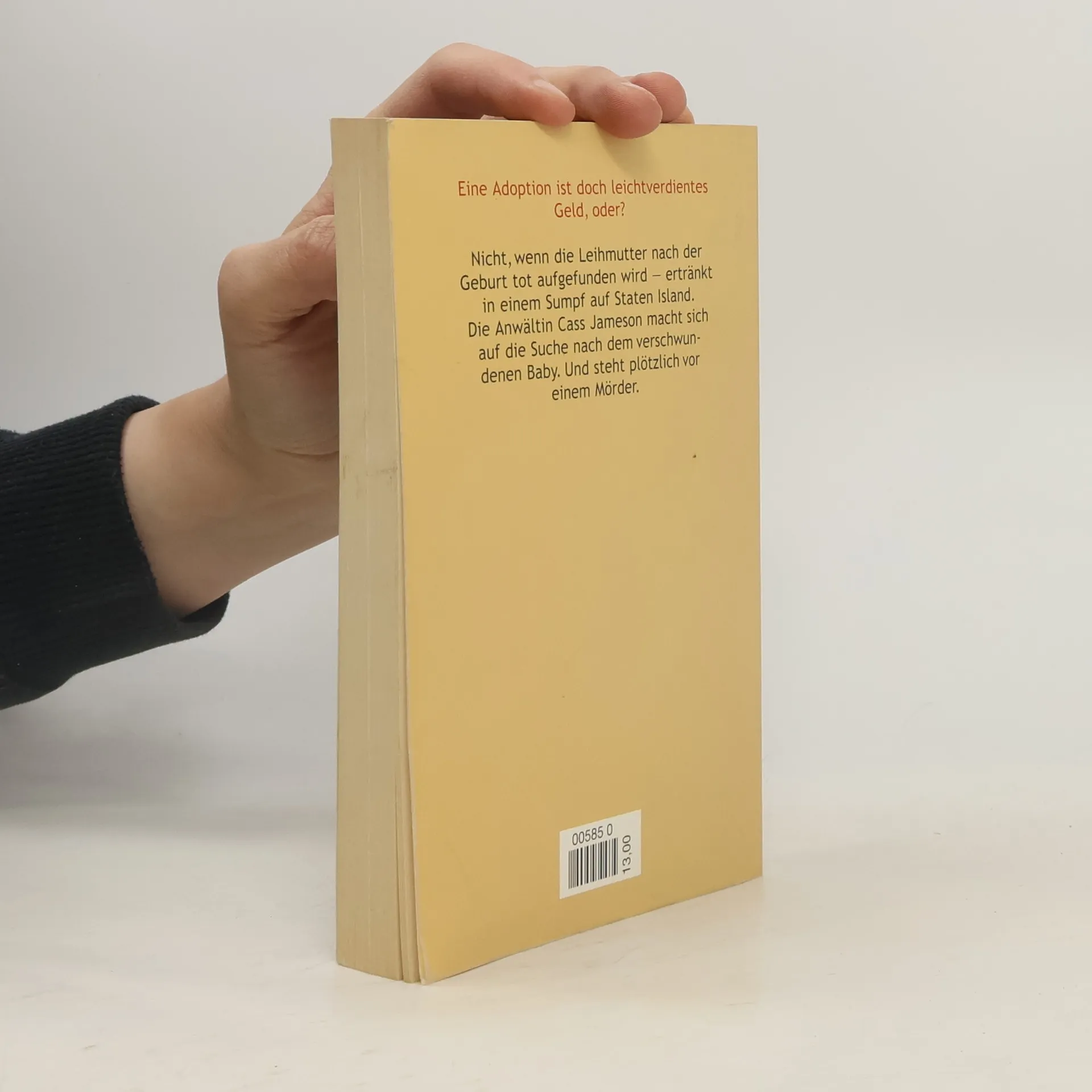 Eine Adoption ist leicht verdientes Geld, oder? Die hochschwangere, vulgäre Amber mit dem attraktiven T-Shirt versteht sich ganz prächtig mit den wohlhabenden künftigen Adoptiveltern ihres ungeborenen Kindes. Aber dann - im allerletzten Moment - überlegt es sich Amber anders. Nein, sie will ihr Baby nicht hergeben. Der zukünftige Adoptivvater reicht eine Vaterschaftsklage ein. Soweit erscheint das alles noch wie eine Komödie, aber ein paar Tage nach der Entbindung ist Amber tot. Ertränkt in einem Sumpf auf Staten Island. Und auf der Suche nach dem verschwundenen Baby steht Rechtsanwältin Cass Jameson plötzlich vor einem Mörder.§§