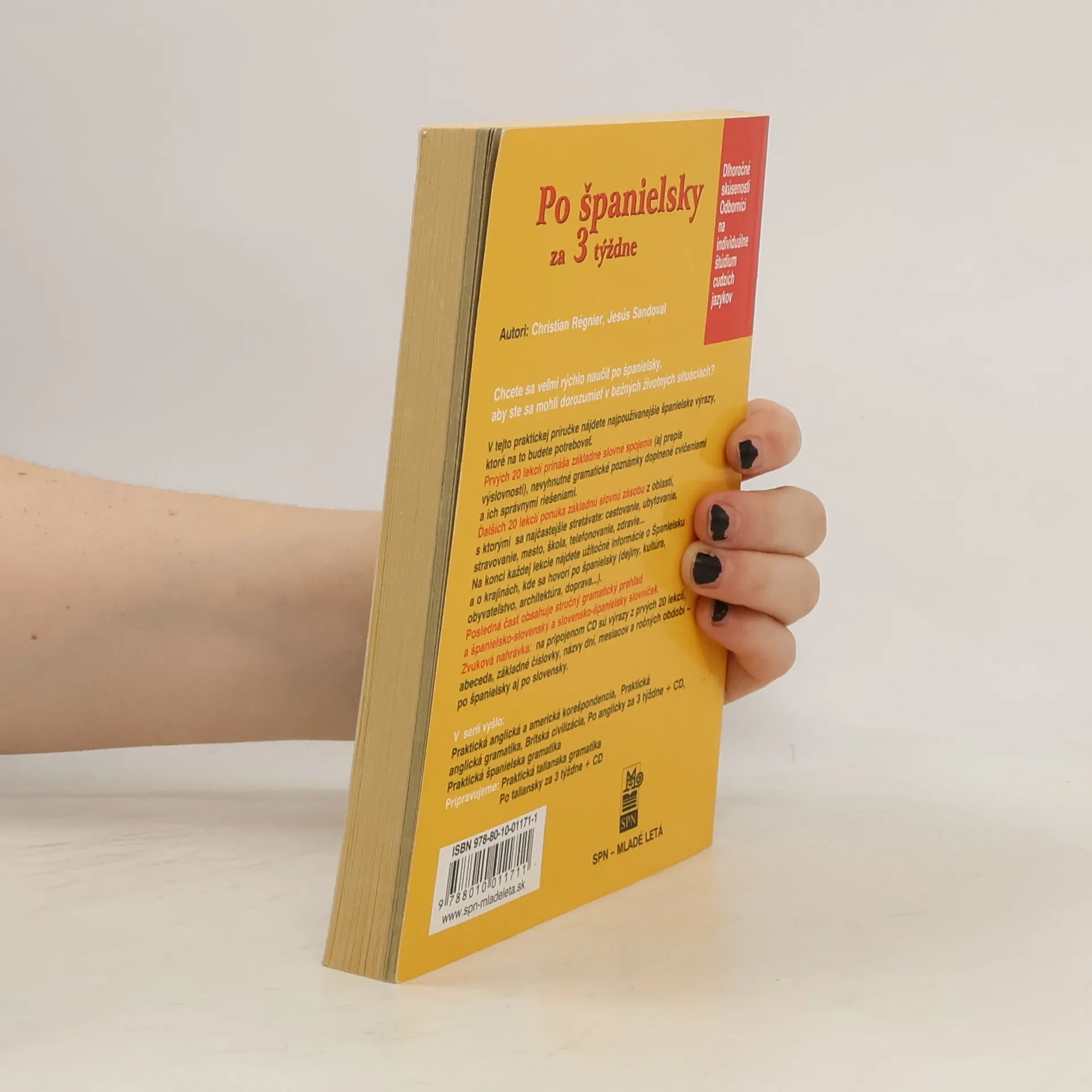 "V tejto praktickej jazykovej príručke nájdete najpoužívanejšie španielske výrazy, ktoré na to budete potrebovať. Prvých 20 lekcií prináša základné slovné spojenia a užitočné gramatické poznámky aj cvičenia, ďalšie lekcie ponúkajú základnú slovnú zásobu z najpoužívanejších oblastí.