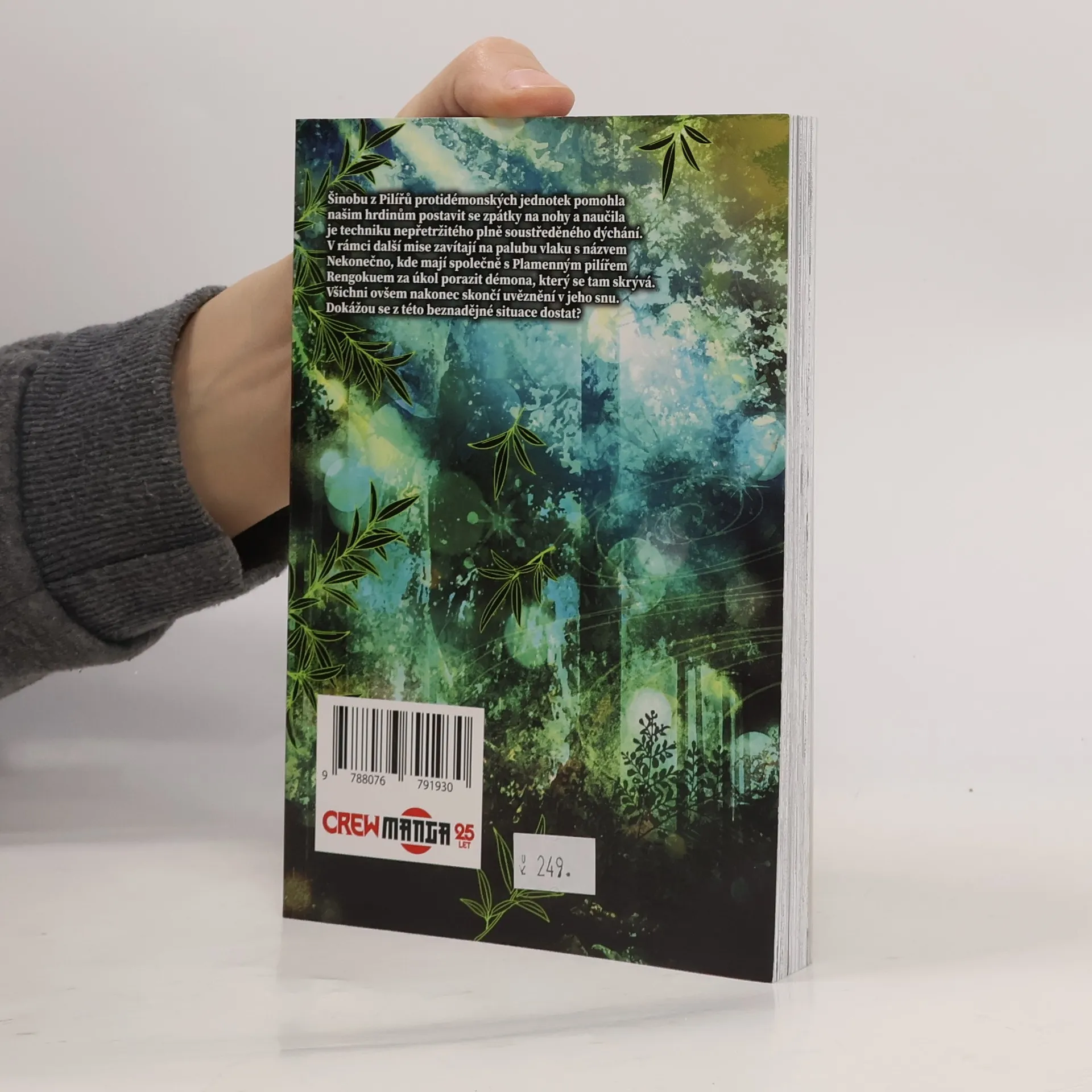 Šinobu z Pilířů protidémonských jednotek pomohla našim hrdinům postavit se zpátky na nohy a naučila je techniku nepřetržitého plně soustředěného dýchání. V rámci další mise zavítají na palubu vlaku s názvem Nekonečno, kde mají společně s Ohnivým pilířem Rengokuem za úkol porazit démona, který se tam skrývá. Všichni ovšem nakonec skončí uvěznění v jeho snu. Dokážou se z této beznadějné situace dostat?