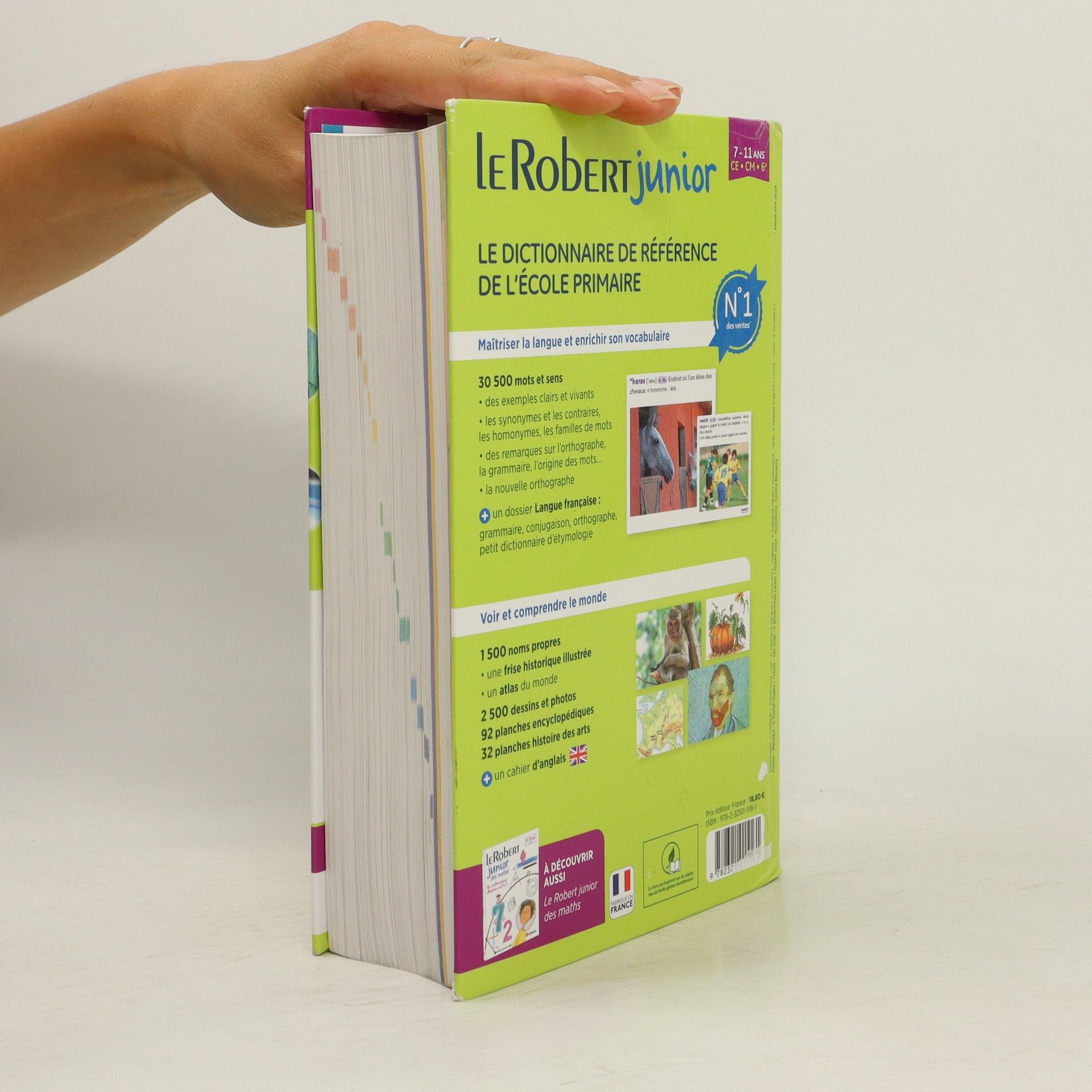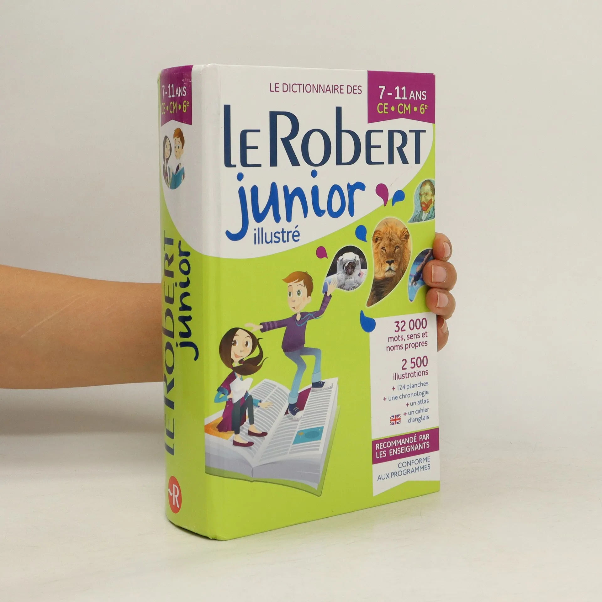 N°1 des dictionnaires scolaires, Le Robert Junior permet aux enfants de 7 à 11 ans, du CE à la 6e, de progresser dans la maîtrise de la langue, d'enrichir leur vocabulaire et de comprendre le monde qui les entoure.Pédagogique et largement illustré, il est recommandé par les enseignants. Maîtriser la langue et enrichir son vocabulaire32 000 mots, sens et noms propresdes exemples clairs et vivantsles synonymes et les contraires, les homonymes, les familles de motsdes remarques sur l'orthographe, la grammaire, l'origine des mots...la nouvelle orthographe+ un dossier Langue française : grammaire, conjugaisons, orthographe, petit dictionnaire d'étymologieVoir et comprendre le monde1 500 noms propresune frise historique illustrée, de la préhistoire à nos joursun atlas du monde2 500 illustrations92 planches encyclopédiques32 planches Histoire des arts+ un cahier d'anglaisLe dictionnaire pour l'école recommandé par les enseignants et conforme aux programmes.pour l'achat de 5 dictionnaires Le Robert Junior :Le dictionnaire vidéoprojetable, idéal pour vos " séances dictionnaire " !Vos élèves visualisent directement vos explicationsToutes les images zoomables, des vidéos et des outils d'annotationPas de problème de dictionnaire oublié ni de cartable trop lourd