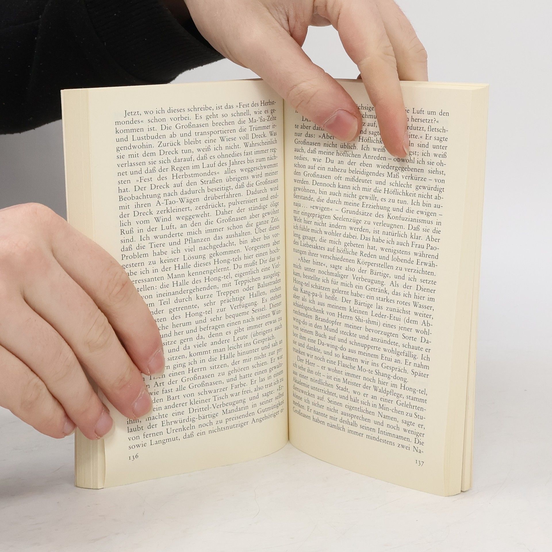 Ein Mandarin aus dem China des 10. Jahrhunderts versetzt sich mit Hilfe eines »Zeit-Reise-Kompasses« in die heutige Zeit. Er überspringt nicht nur tausend Jahre, sondern landet auch in einem völlig anderen Kulturkreis: in einer modernen Großstadt, deren Name in seinen Ohren wie Min-chen klingt und die in Ba Yan liegt. Verwirrt und wißbegierig stürzt sich Kao-tai in ein Abenteuer, von dem er nicht weiß, wie es ausgehen wird. In Briefen an seinen Freund im Reich der Mitte schildert er seine Erlebnisse und Eindrücke, erzählt vom seltsamen Leben der »Großnasen«, von ihren kulturellen und technischen Errungenschaften und versucht Beobachtungen und Vorgänge zu interpretieren, die ihm selbst zunächst unverständlich sind.