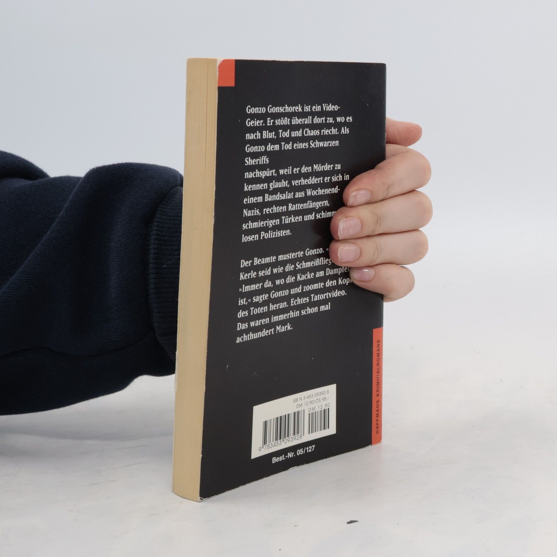Band 1 der Glauserpreisgekrönten GonzokrimireiheGonzo Gonschorek ist ein Video-Geier. Er stößt überall dort zu, wo es nach Blut, Tod und Chaos riecht. Doch sein Aas ist nicht immer wehrlos, und als er dem Tod eines Schwarzen Sheriffs nachspürt, weil er den Mörder zu kennen glaubt, verheddert er sich in einem Bandsalat aus brutalen Wochenend-Nazis, rechten Rattenfängern, schmierigen Türken und schimmerlosen Polizisten.