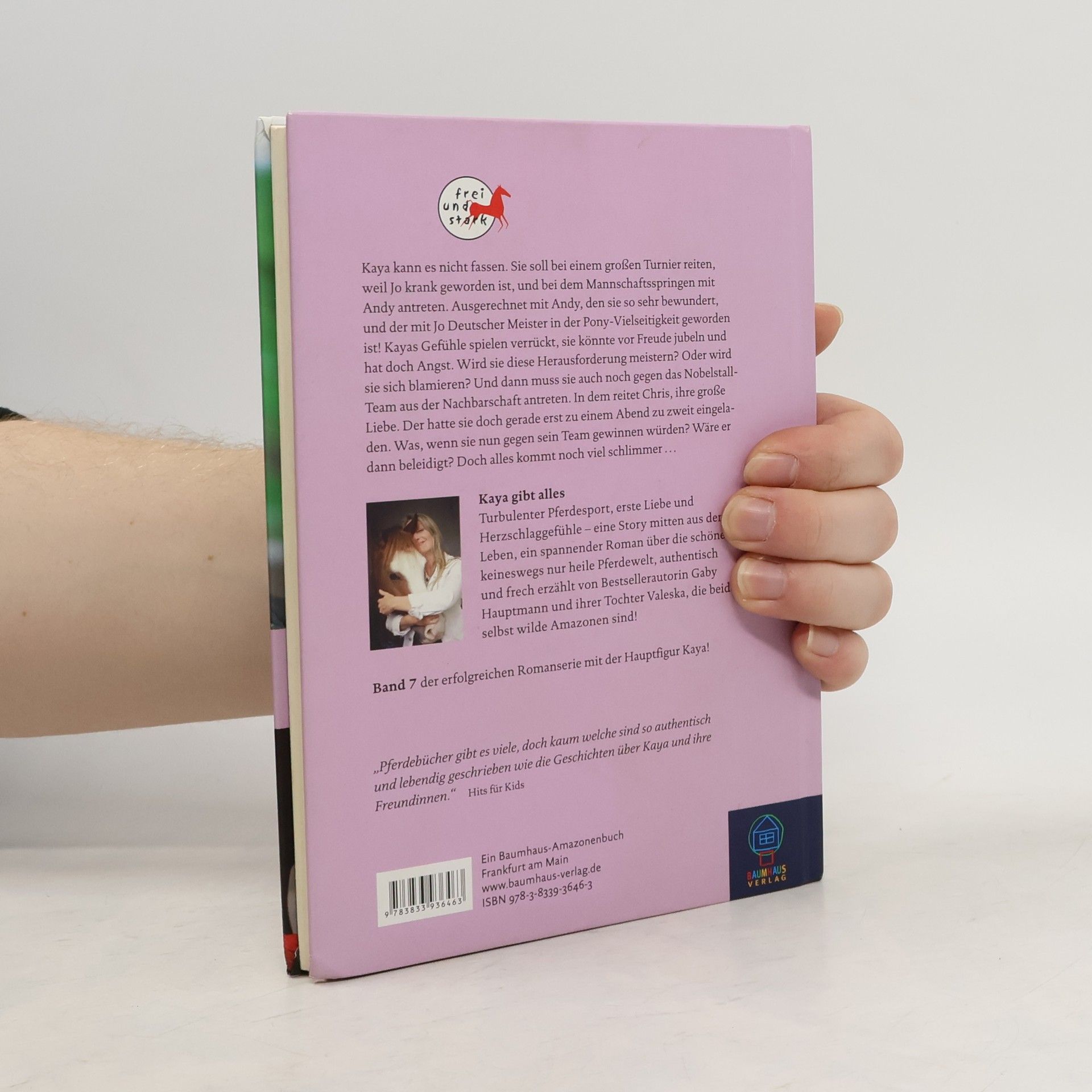 Kaya kann es nicht fassen. Sie soll bei einem großen Turnier reiten, weil Jo krank geworden ist, und bei dem Mannschaftsspringen mit Andy antreten. Ausgerechnet mit Andy, den sie so bewundert, und mit dem Jo Deutscher Meister in der Pony-Vielseitigkeit geworden ist! Kayas Gefühle spielen verrückt, sie könnte vor Freude jubeln und hat doch Angst. Wird sie die Herausforderung meistern? Oder wird sie sich blamieren? Und dann muss sie auch noch gegen das Nobelstall-Team aus der Nachbarschaft antreten. In dem reitet Chris, ihre große Liebe. Der hatte sie doch gerade erst zu einem Abend zu zweit eingeladen. Und das war nun mal beim DVD-Film „Keinohrhasen” und mit Chips und Cola so richtig gemütlich und vielversprechend gewesen. Alles sah doch so gut aus – was, wenn sie nun gegen sein Team gewinnen würde? Wäre er dann beleidigt? Aber Kaya will gewinnen, denn schließlich geht es doch um ihr Team!