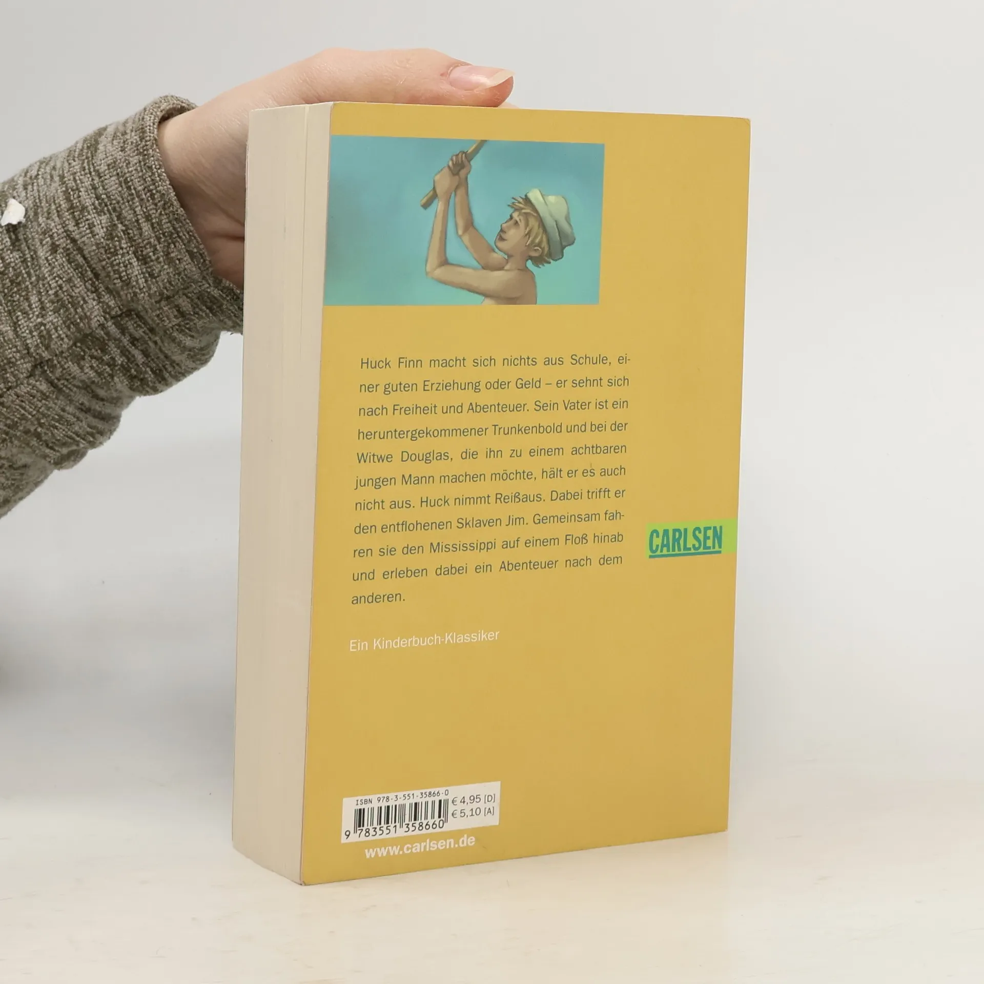Huck Finn macht sich nichts aus Schule, einer guten Erziehung oder Geld - er sehnt sich nach Freiheit und Abenteuer. Sein Vater ist ein heruntergekommener Trunkenbold und bei der Witwe Douglas, die ihn zu einem achtbaren jungen Mann machen möchte, hält er es auch nicht aus. Als ihn sein Vater dann auch noch bei sich einsperrt, um an Hucks kleines Vermögen zu kommen, das er bei einem Abenteuer mit Tom Sawyer gewonnen hat, reicht es Huck endgültig. Er täuscht kurzerhand seinen eigenen Tod vor und nimmt Reißaus. Dabei trifft er den entflohenen Sklaven Jim. Gemeinsam fahren sie den Mississippi auf einem Floß hinab und erleben dabei ein Abenteuer nach dem anderen.
