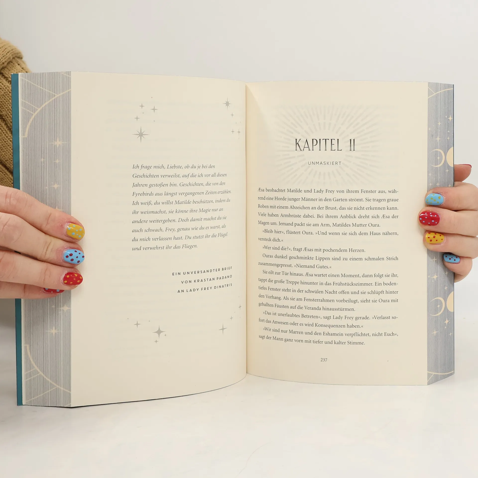 In dieser limitierten Auflage erfahren wir von den Nightbirds, die in der verbotenen Magie von Simta leben. Tagsüber sind Matilde, Sayer und Æsa brave Töchter, nachts verleihen sie mit ihren Küssen Magie. Nach einem Attentat wird ihr Leben zum goldenen Käfig, und sie müssen herausfinden, wer hinter dem Anschlag steckt. Band 1 der Reihe.