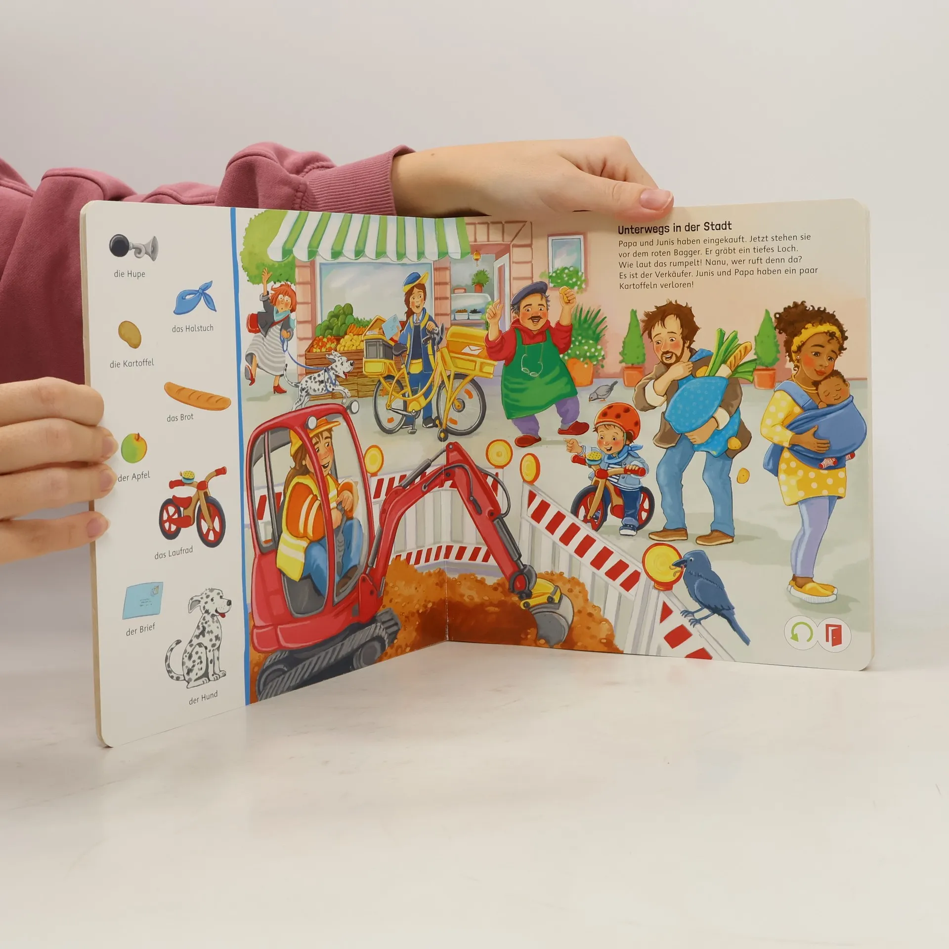 In diesem interaktiven Bilderbuch begleiten Kinder Junis und seine Familie durch einen abenteuerlichen Tag. Mit authentischen Geräuschen, Erzähltexten, Reimen und Liedern wird das Entdecken lebendig. Spannende Suchbilder fördern das genaue Hinsehen und Lernen für kleine Entdecker ab 2 Jahren.