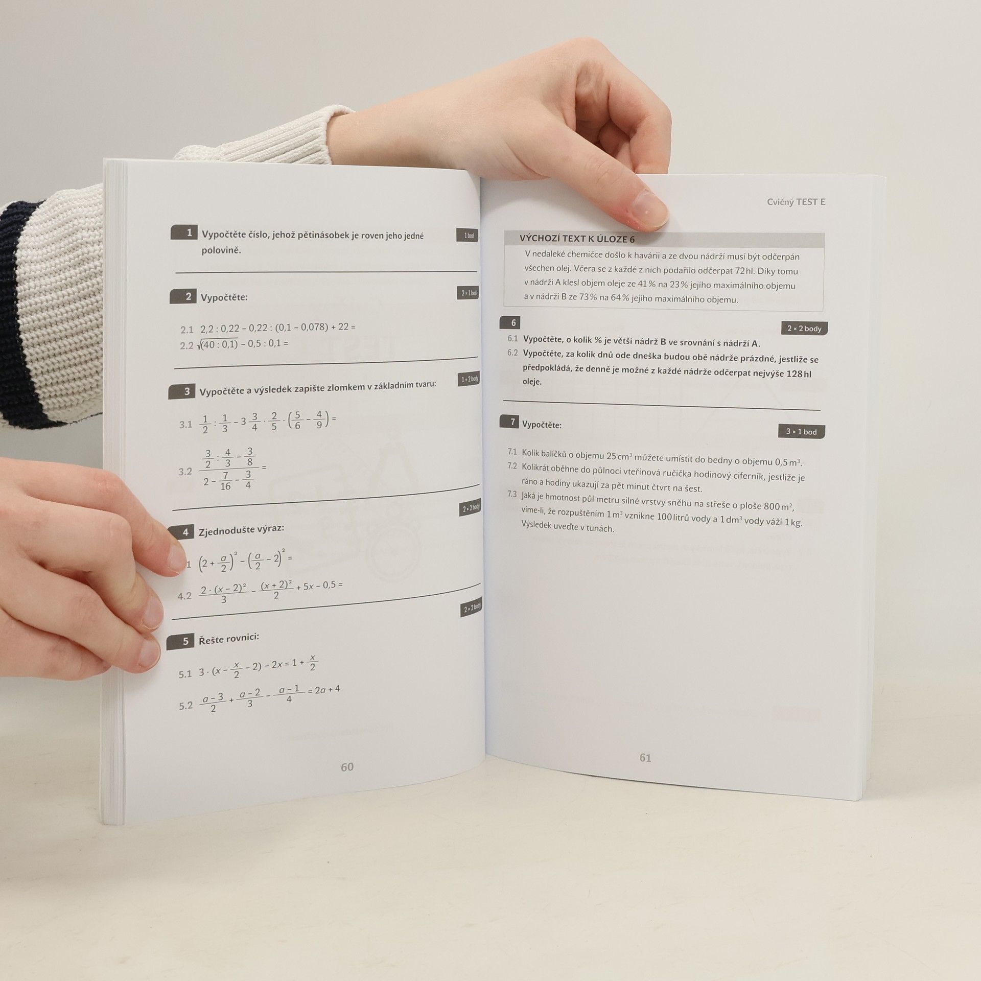 Připrav se na státní přijímací zkoušky! Připravuješ se ke státním přijímacím zkouškám na čtyřleté gymnázium nebo na jinou střední školu s maturitou, a chceš u nich uspět? Vyzkoušej naše „přijímačky nanečisto“, které ti pomohou zkoušku s přehledem zvládnout. Publikace obsahuje 11 cvičných testů z matematiky. Díky nim získáš ucelenou představu o tom, jak jsou otázky formálně koncipovány a budeš se v nich proto dobře orientovat. Naučíš se pracovat s jednotlivými typy úloh a budeš si moci vyzkoušet i ukázkový test. Vyhodnocení odpovědí nalezneš v klíči správných řešení. Důležitou součástí titulu je záznamový arch a pokyny pro jeho správné vyplnění. Pokud si jej nastuduješ dopředu, získáš cenné minuty navíc, které se ti při řešení testu jistě budou hodit. Výhodou u zkoušek může být i znalost správné strategie. Prozradíme ti tipy na to, jak v testu nejlépe postupovat, zda je lepší řešit jednu otázku po druhé, nebo se věnovat nejprve těm, za které je nejvíc bodů. Štěstí přeje připraveným, tak se do toho pusť! Testové úlohy vycházejí ze standardů daných Rámcovými vzdělávacími programy ZŠ.