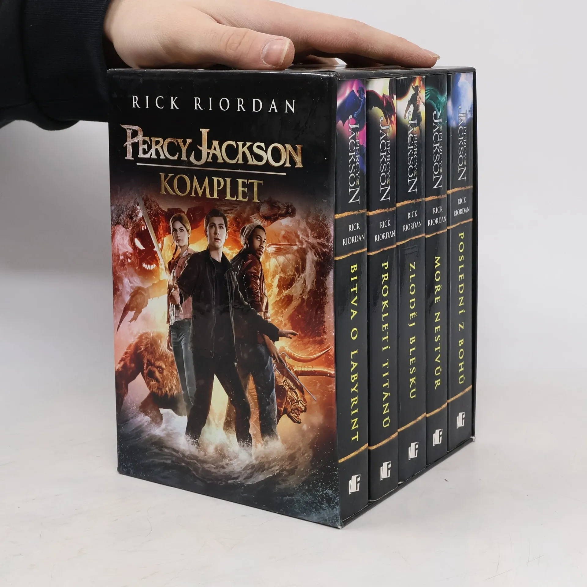 Fantasy série o obyčejném klukovi, který se jednoho dne dozví, že jeho otec je bájný řecký bůh. Najednou je vytržen ze svého normálního života a začíná se učit žít ve světě plném bytostí, které znal snad jen z řeckých bájí. Být polobůh sebou přináší celou řadu povinností, jako nutný výcvik v táboře polokrevných a spoustu akcí a bitev. Komplet obsahuje 1. -5. díl: Zloděj blesků, Moře nestvůr, Prokletí Titánů, Bitva o labyrint, Poslední z bohů