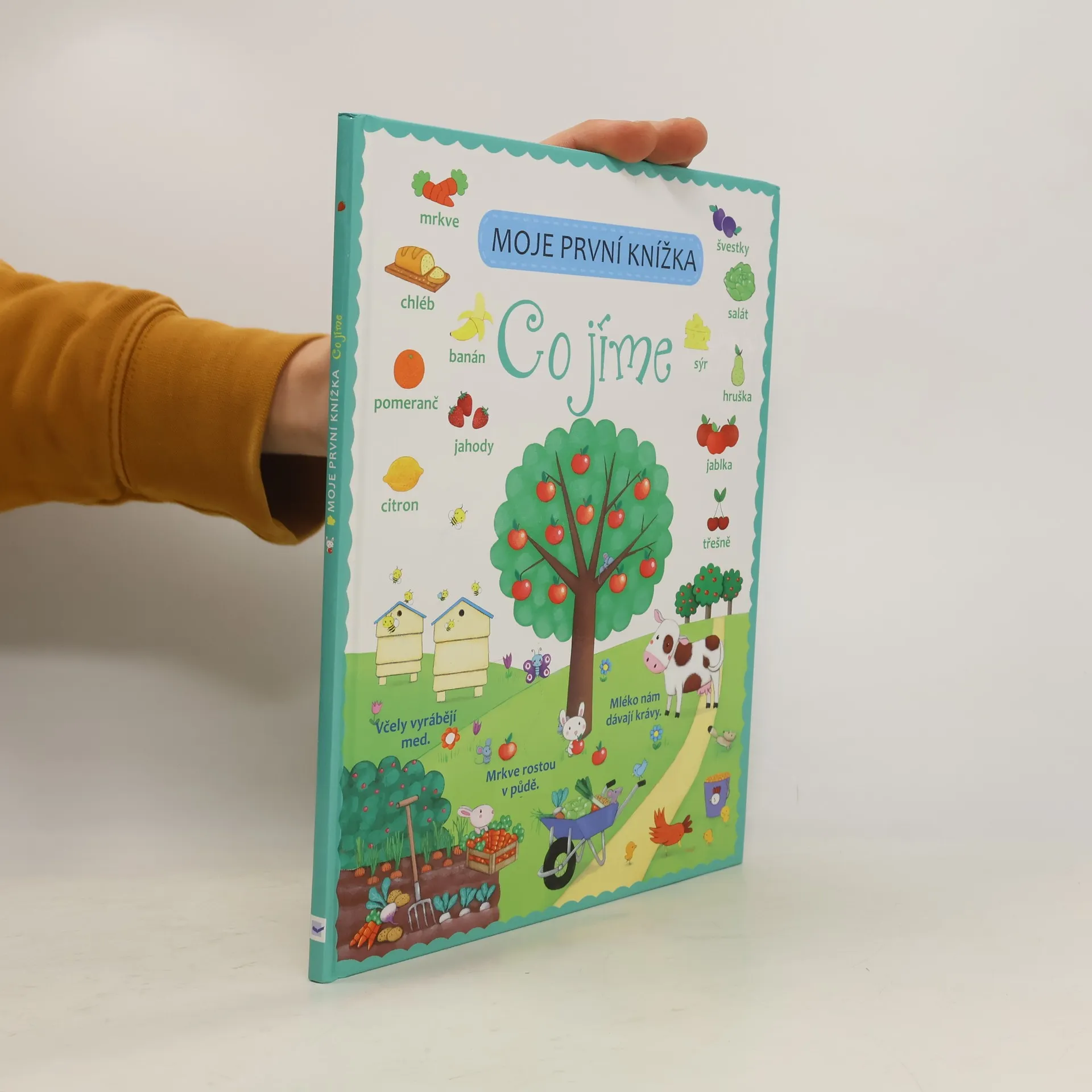 V této krásně ilustrované knížce se dozvíš spoustu zajímavých informací o jídle. A nejen to, najdeš tu i zábavné hádanky a kvízy. Mrkev, banán, pomeranč, jahody, citron, švestky, salát, jablka - poznáš druhy ovoce a zeleniny na obrázku? Které ovoce máš nejraději? Víš, co jsou to mléčné výrobky a jak se vyrábí sýr? Umíš říci, kde se vlastně berou vejce a odkud získáváme maso? Zajímá tě, jak se peče chleba, jak se pěstuje rýže a co jsou to těstoviny? A jaké jídlo je tvoje nejoblíbenější? V této krásně ilustrované zábavné knížce se o jídle dozvíš spoustu zajímavých informací. A nejen to. Najdeš zde i hádanky a kvízy, při kterých si užiješ spoustu legrace a ještě se naučíš něco nového. Tak honem, procvič si své vědomosti!