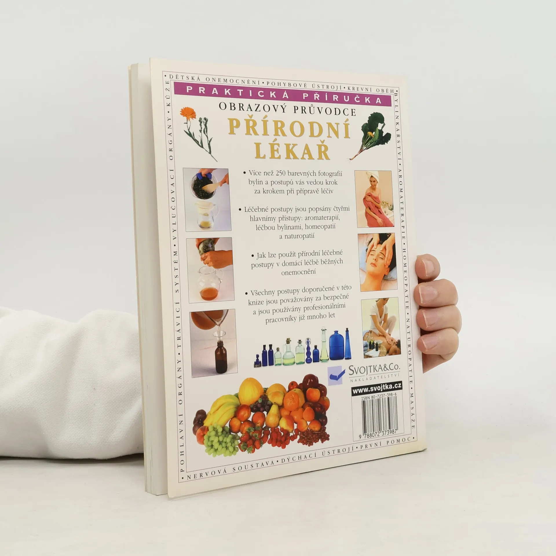 Obrazový průvodce přírodními léčebnými postupy, doporučovanými pro domácí léčbu běžných onemocnění. Příručka se zaměřuje na čtyři hlavní léčebné přístupy, uznávané i profesionály v klinické praxi: aromaterapii, naturopatii (uplatnění zdravého životního stylu jako uzdravovací svépomocné metody), bylinnou léčbu a homeopatii. Jednotlivé kapitoly se zaměřují na zdravotní problémy konkrétních částí a systémů lidského těla. Doporučované metody přírodní léčby jsou považovány za bezpečné, i když samozřejmě při vážnějších problémech je vždy doporučována konzultace lékaře.