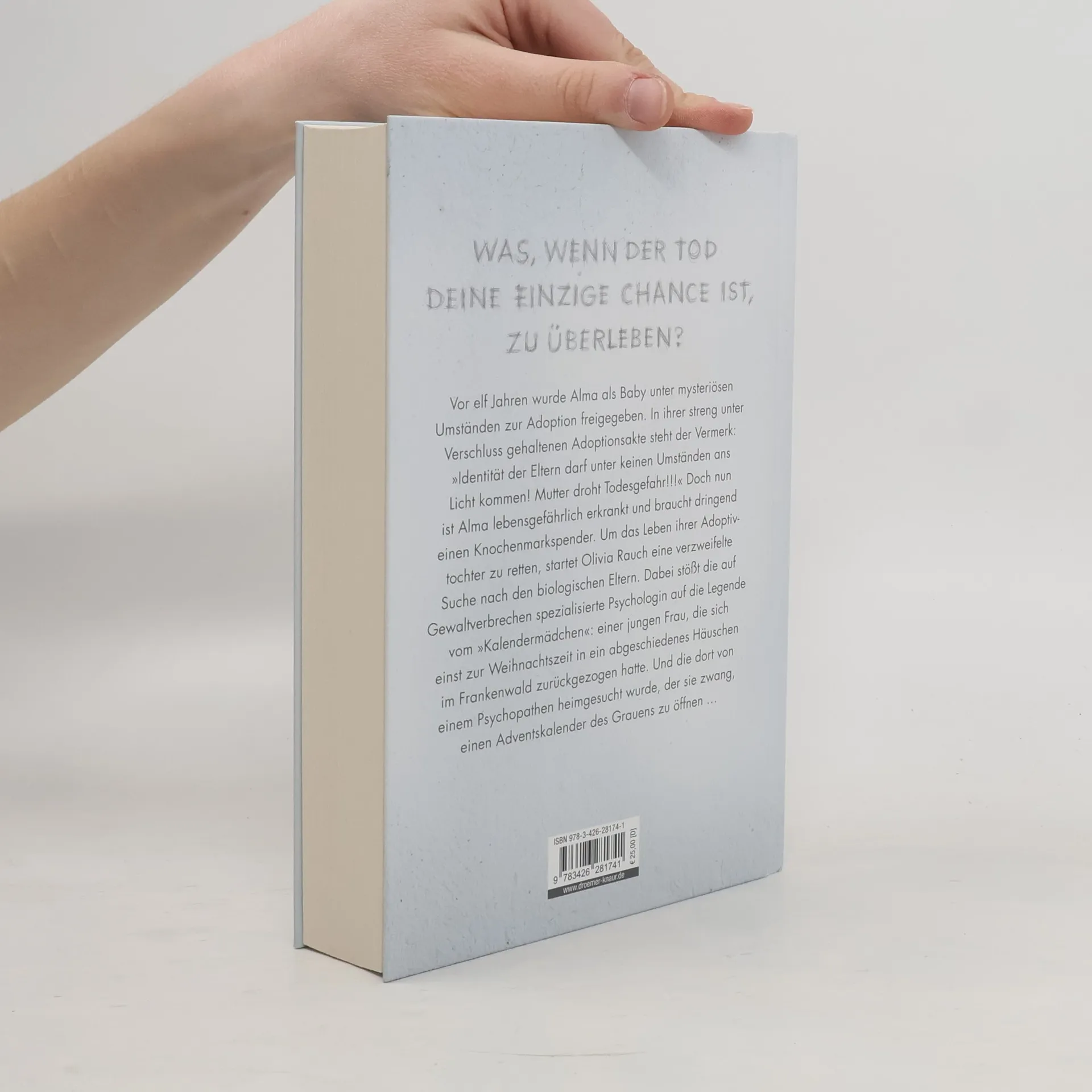 Vor elf Jahren wurde Alma als Baby unter mysteriösen Umständen zur Adoption freigegeben. In ihrer streng unter Verschluss gehaltenen Adoptionsakte steht der Vermerk: »Identität der Eltern darf unter keinen Umständen ans Licht kommen! Mutter droht Todesgefahr!!!« Doch nun ist Alma lebensgefährlich erkrankt und braucht dringend einen Knochenmarkspender. Um das Leben ihrer Adoptivtochter zu retten, startet Olivia Rauch eine verzweifelte Suche nach den biologischen Eltern. Dabei stößt die auf Gewaltverbrechen spezialisierte Psychologin auf die Legende vom »Kalendermädchen«: einer jungen Frau, die sich einst zur Weihnachtszeit in ein abgeschiedenes Häuschen im Frankenwald zurückgezogen hatte. Und die dort von einem Psychopathen heimgesucht wurde, der sie zwang, einen Adventskalender des Grauens zu öffnen … . Mit den verschiedenen Zeitebenen, hatte ich keine Probleme. Die Twists habe ich meistens absolut nicht kommen sehen. So saß ich oft sehr überrascht im Sessel und war noch mehr gefesselt.