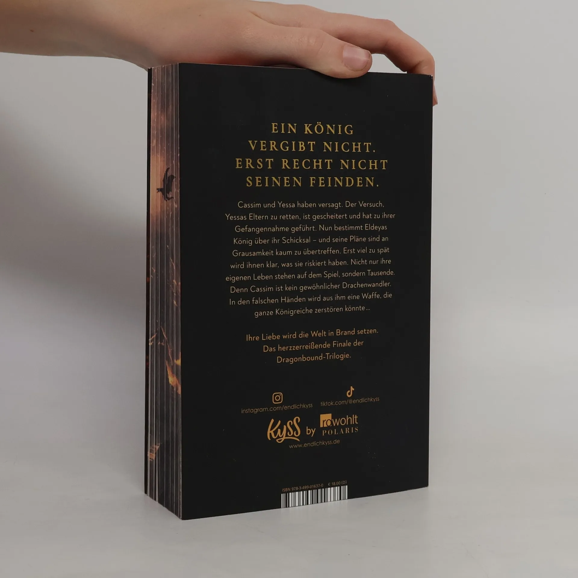In "Ein König vergibt nicht" von Marie Niehoff steht das Schicksal von Cassim und Yessa auf dem Spiel, nachdem ihr Versuch, Yessas Eltern zu retten, scheitert. Eldeyas König plant grausame Dinge, und Cassims Kräfte könnten zur Waffe werden, die ganze Königreiche bedroht. Ein episches Finale der Dragonbound-Trilogie.
