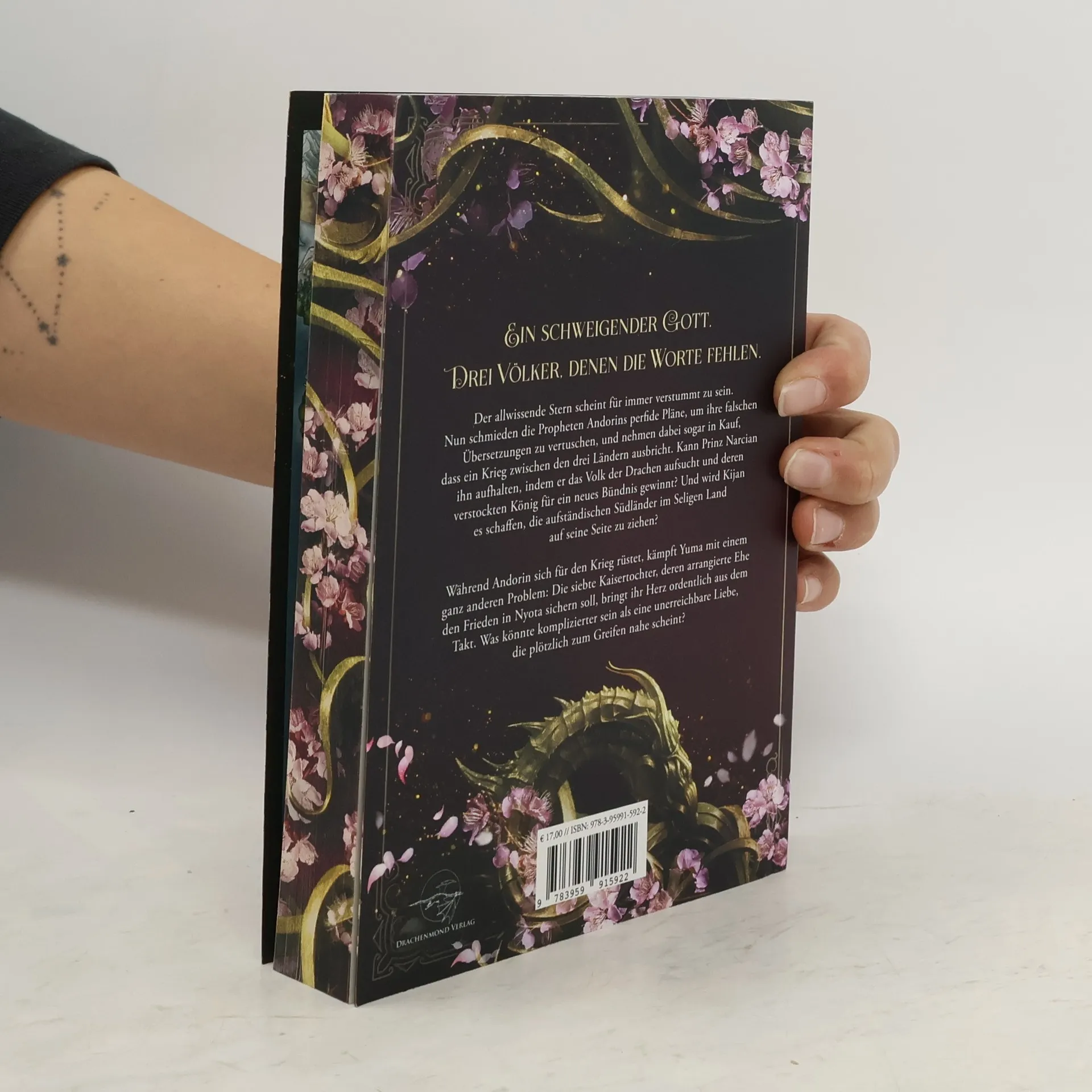 In "Ein schweigender Gott" stehen drei Völker vor dem Abgrund eines Krieges, während die Propheten von Andorin ihre falschen Übersetzungen vertuschen. Prinz Narcian sucht die Drachen für ein Bündnis, während Kijan die Südländer gewinnen will. Gleichzeitig kämpft Yuma mit der unerreichbaren Liebe zur siebten Kaisertochter.