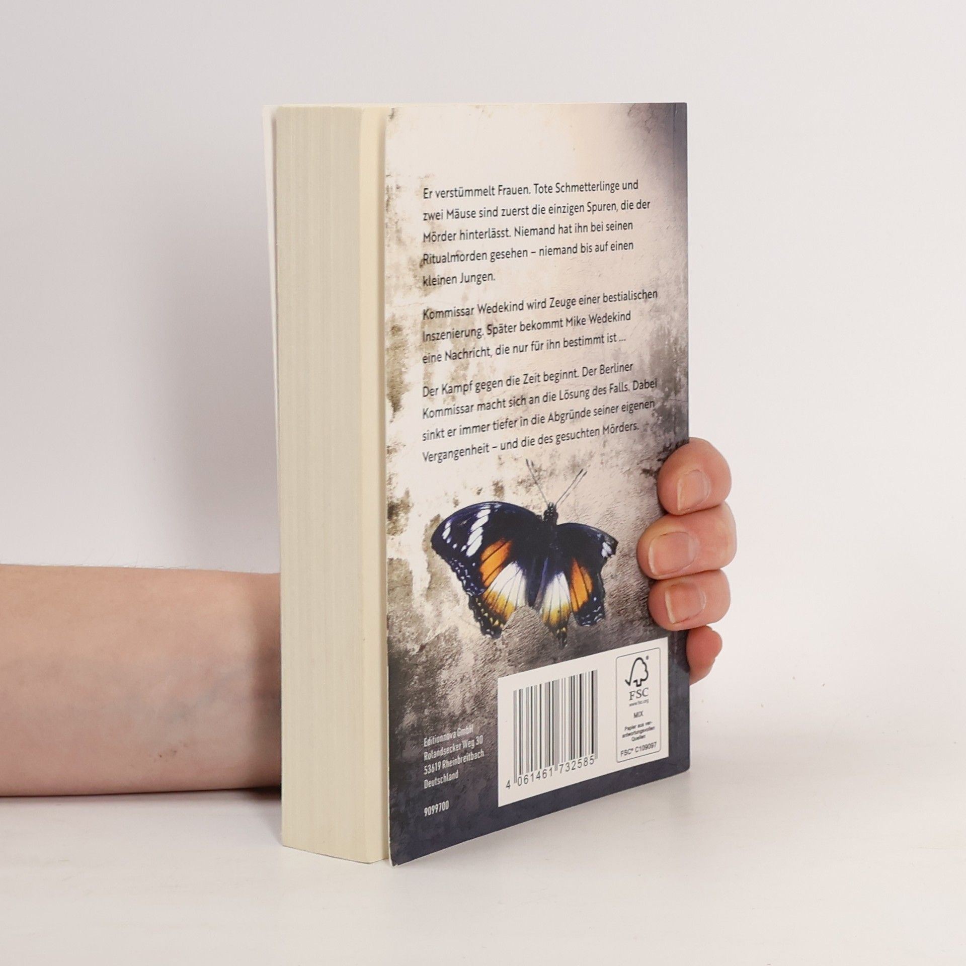 Er verstümmelt Frauen. Tote Schmetterlinge und zwei Mäuse sind zuerst die einzigen Spuren, die der Mörder hinterlässt. Niemand hat ihn bei seinen Ritualmorden gesehen - niemand bis auf einen kleinen Jungen. Kommissar Wedekind wird Zeuge einer bestialischen Inszenierung. Später bekommt Mike Wedekind eine Nachricht, die nur für ihn bestimmt ist ... Der Kampf gegen die Zeit beginnt. Der Berliner Kommissar macht sich an die Lösung des Falls. Dabei sinkt er immer tiefer in die Abgründe seiner eigenen Vergangenheit - und die des gesuchten Mörders.