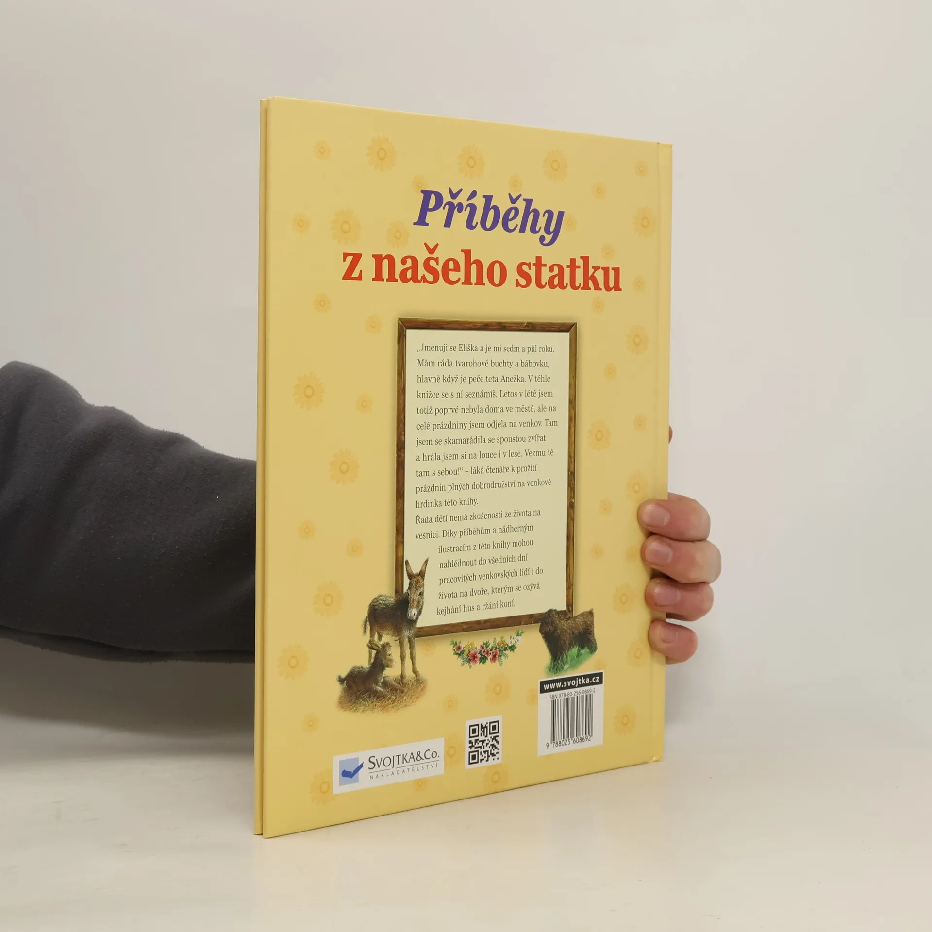 Jmenuji se Eliška. Je mi sedm a půl roku. Mám ráda tvarohové knedlíky a bábovku od mé tetičky. Poprvé jsem opustila velké moderní město, ve kterém bydlím s rodiči, a odjela jsem na venkov. Tam jsem se spřátelila se zvířátky, objevila jsem louku a les. Pojď se mnou prožít prázdniny na venkově plné dobrodružství... Většina dětí nemá bezprostřední zkušenosti se životem na venkově. Díky příběhům a nádherným ilustracím v této knize mohou děti nahlédnout do všedních dnů života na venkově, například do dění na dvoře, kterým se celý den rozléhá kejhání hus, kvokání slepic a řehtání koní, a společně s hlavní hrdinkou zažít mnoho zajímavých dobrodružství.