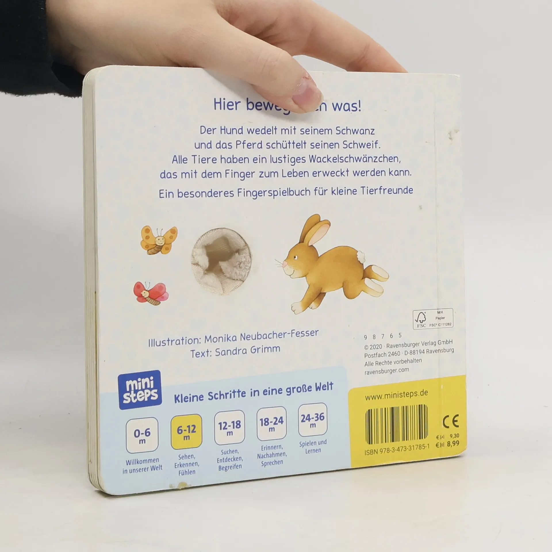 In diesem interaktiven Fingerspielbuch für Kinder ab 9 Monaten erwachen Tiere zum Leben, wenn man den Finger hineinsteckt. Es fördert spielerisch die Feinmotorik, Wahrnehmung und das Sprachverständnis der Kleinen. Mit lustigen Reimen und beweglichen Schwänzchen macht es das Lesen zu einem besonderen Erlebnis für Babys.