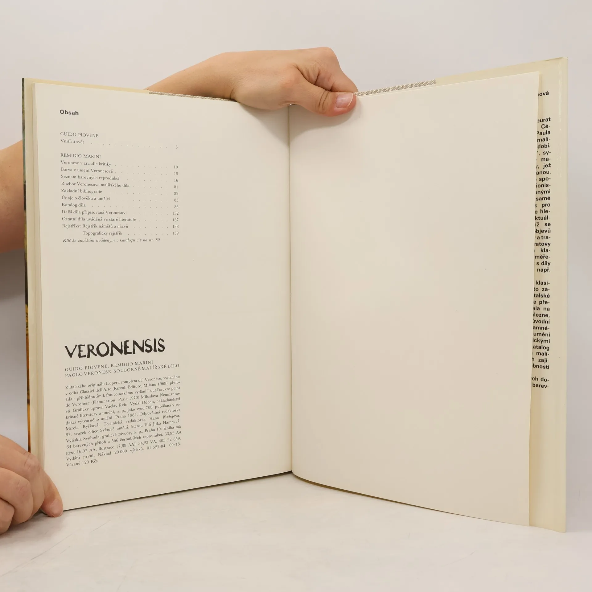 Kromě 64 barevných reprodukcí Veronesových obrazů, úvodní studie o malířově osobnosti a díle, výňatků z kritik a životopisných údajů přináší publikace chronologický a ikonografický seznam všech obrazů, které Veronese namaloval nebo které se mu připisují. Součástí je i názvový a topografický rejstřík.
