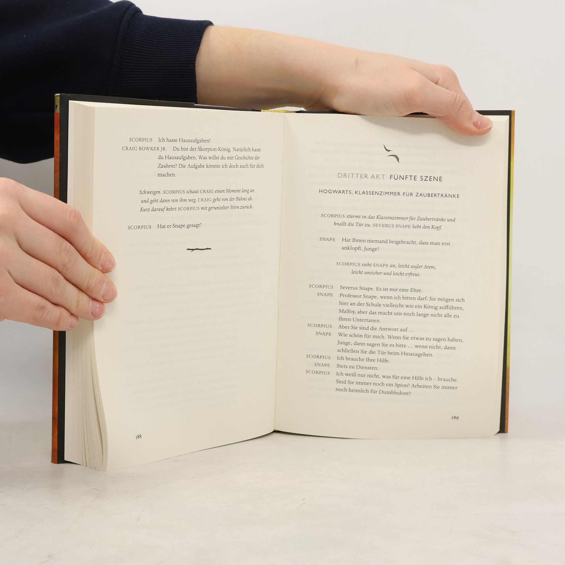 Die achte Geschichte. Neunzehn Jahre später. Das Skript zum Theaterstück! Harry Potter und das verwunschene Kind, basierend auf einer neuen Geschichte von J. K. Rowling, John Tiffany und Jack Thorne, ist ein neues Theaterstück von Jack Thorne. Es erzählt die achte Geschichte in der Harry-Potter-Serie und ist gleichzeitig die erste offizielle Harry-Potter-Geschichte, die auf der Bühne präsentiert wird. Das Stück feierte am 30. Juli 2016 im Londoner West End Premiere. Es war nie leicht, Harry Potter zu sein – und jetzt, als überarbeiteter Angestellter des Zaubereiministeriums, Ehemann und Vater von drei Schulkindern, ist sein Leben nicht gerade einfacher geworden. Während Harrys Vergangenheit ihn immer wieder einholt, kämpft sein Sohn Albus mit dem gewaltigen Vermächtnis seiner Familie, mit dem er nichts zu tun haben will. Als Vergangenheit und Gegenwart auf unheilvolle Weise miteinander verschmelzen, gelangen Harry und Albus zu einer bitteren Erkenntnis: Das Dunkle kommt oft von dort, wo man es am wenigsten erwartet.