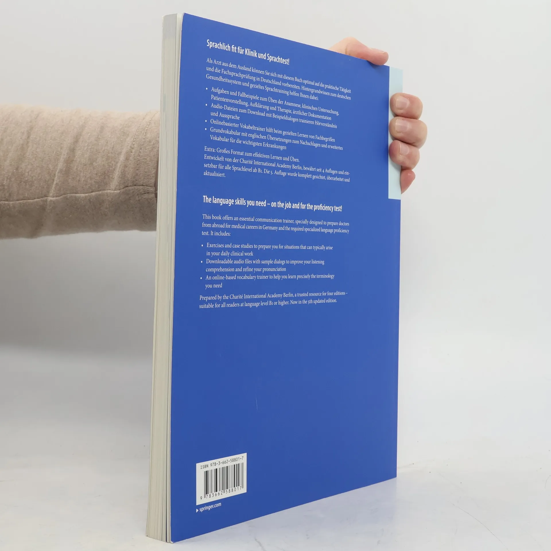 Als Arzt aus dem Ausland können Sie sich mit diesem Buch optimal auf die praktische Tätigkeit und die Fachsprachprüfung in Deutschland vorbereiten. Hintergrundwissen zum deutschen Gesundheitssystem und gezieltes Sprachtraining helfen Ihnen dabei: Aufgaben und Fallbeispiele zum Üben der Anamnese, klinischen Untersuchung, Patientenvorstellung, Aufklärung und Therapie, ärztlicher Dokumentation Audio-Dateien zum Download mit Beispieldialogen trainieren Hörverständnis und Aussprache Onlinebasierter Vokabeltrainer hilft beim gezielten Lernen von Fachbegriffen Grundvokabular mit englischen Übersetzungen zum Nachschlagen und erweitertes Vokabular für die wichtigsten Erkrankungen Extra: Großes Format zum effektiven Lernen und Üben.Entwickelt von der Charité International Academy Berlin, bewährt seit 4 Auflagen und einsetzbar für alle Sprachlevel ab B1. Die 5. Auflage wurde komplett gesichtet, überarbeitet und aktualisiert.