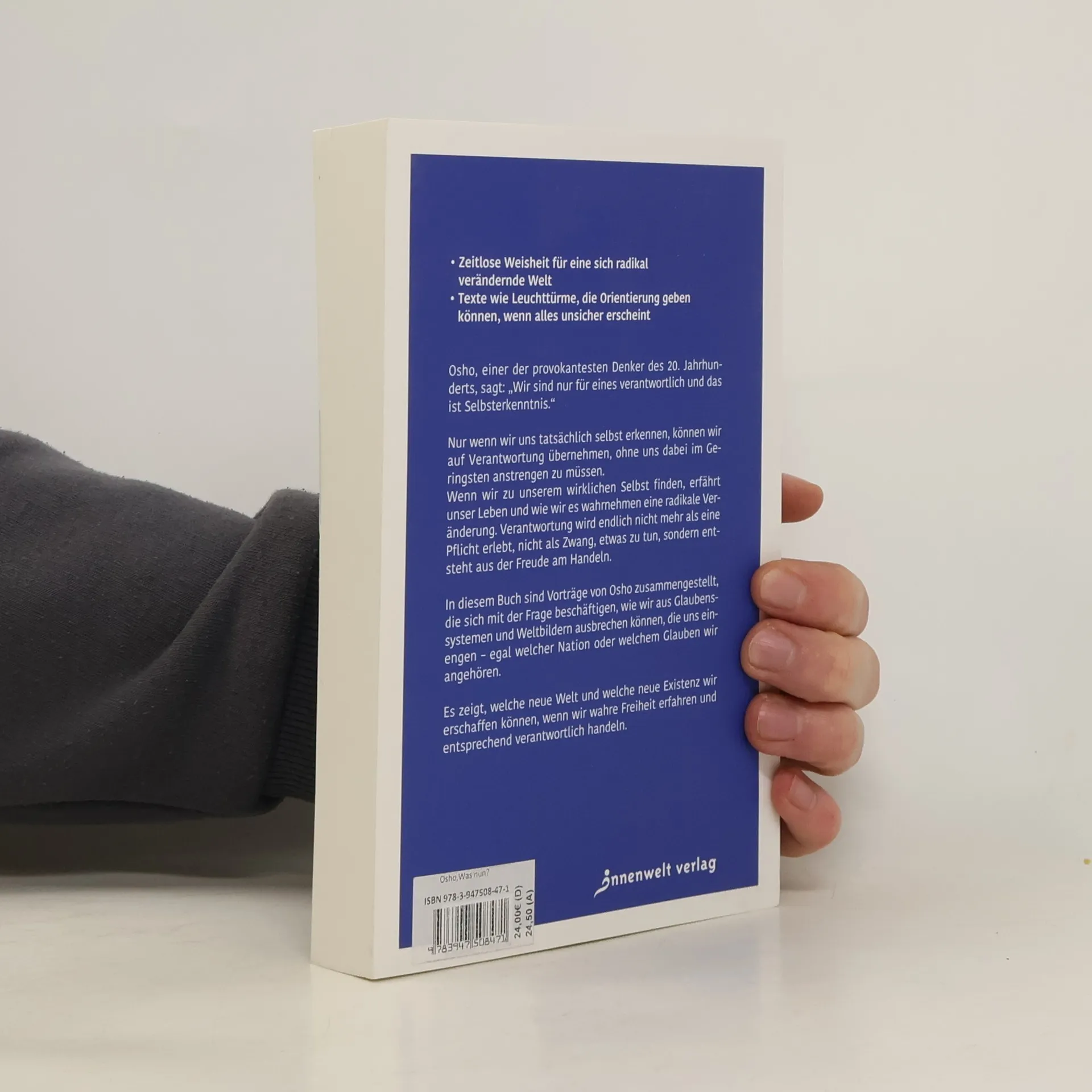 Osho, ein provokanter Denker des 20. Jahrhunderts, betont die Bedeutung der Selbsterkenntnis für die Übernahme von Verantwortung. In seinen Vorträgen zeigt er, wie wir aus einschränkenden Glaubenssystemen ausbrechen können und eine neue Welt schaffen, wenn wir wahre Freiheit und Freude am Handeln erfahren.