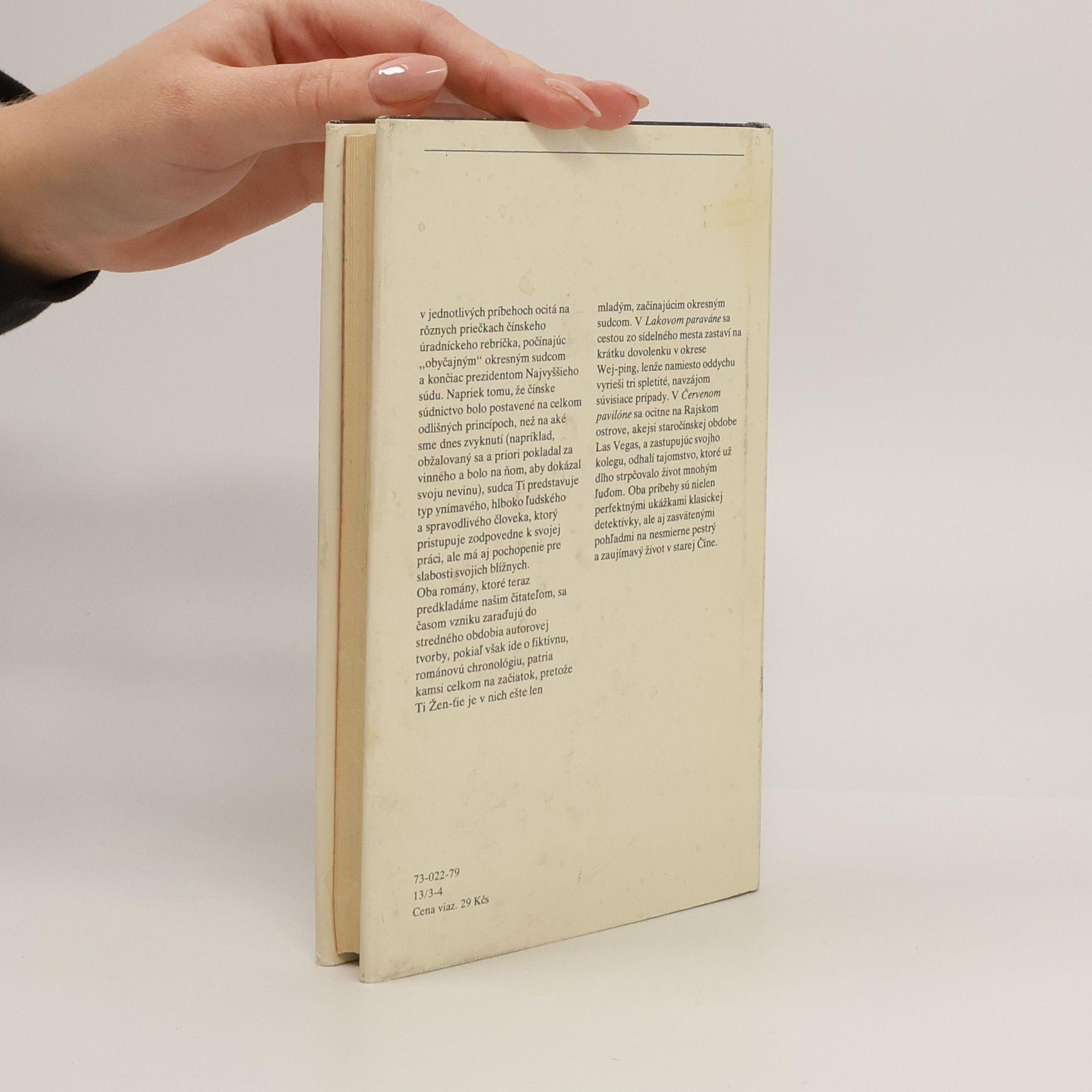 V Lakovanom paraváne sa sudca Ti zastaví na krátku dovolenku v okrese Wej-ping, lenže namiesto oddychu vyrieši tri spletité, navzájom súvisiace prípady. Najkomplikovanejším z nich je vražda manželky okresného sudcu, ktorý sa stáva hlavným podozrivým, hoci prípad obostiera viacero záhadných okolností. V Červenom pavilóne sa sudca Ti ešte v začiatkoch svojej kariéry ocitá na Rajskom ostrove, akéhosi predchodzu súčasného Las Vegas. Pri vyšetrovaní smrti krásnej kurtizány, údajnej samovraždy známeho akademika a tajomstva pavilónu, v ktorom je ubytovaný, odhaľuje súvislosti siahajúce do dávnej minulosti, v ktorých hrajú úlohu najmä ľudské city a osudová vášeň.