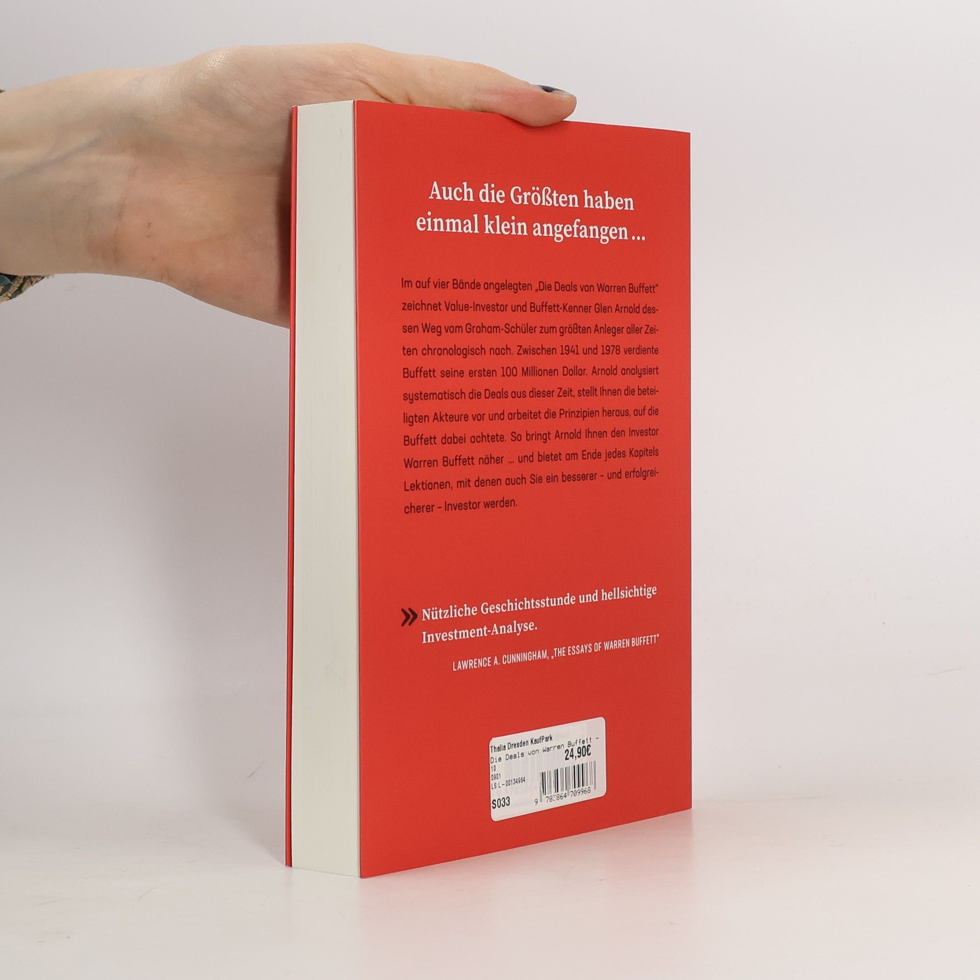 In diesem Buch analysiert Glen Arnold Warren Buffetts Entwicklung seiner Investmentphilosophie von 1941 bis 1978. Er erklärt Buffetts Denkweise und die Lektionen, die aus Erfolgen und Misserfolgen stammen. Am Ende jedes Kapitels bietet Arnold wertvolle Tipps, um Anlegern zu helfen, ihre eigenen Entscheidungen zu optimieren.