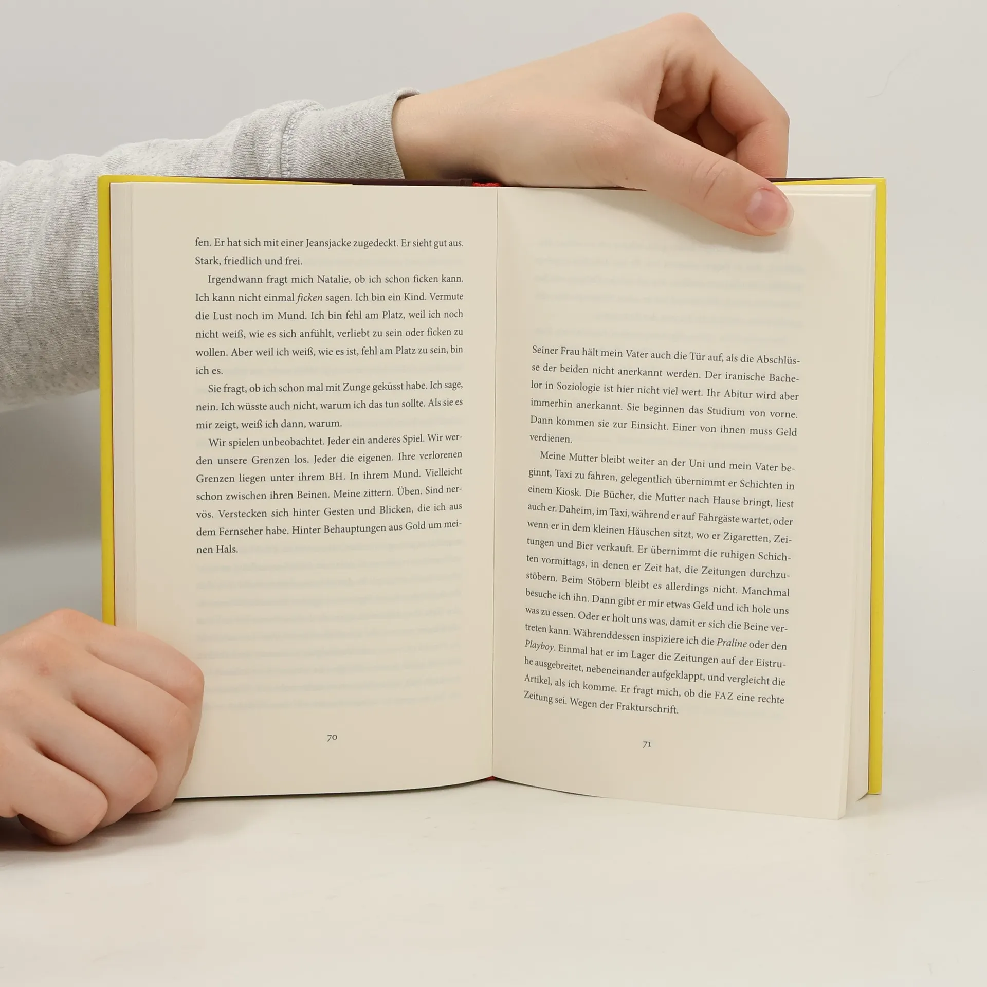Ein Junge aus dem Iran lebt in den 1990ern im Ruhrgebiet und sehnt sich nach Gewalt, während er die Kränkungen Deutschlands beobachtet. Seine Mutter glaubt an Fortschritt, während sein Zorn wächst. Der Roman thematisiert Diaspora, das Gefühl des Fremdseins und die Realität eines tristen Lebensumfelds.