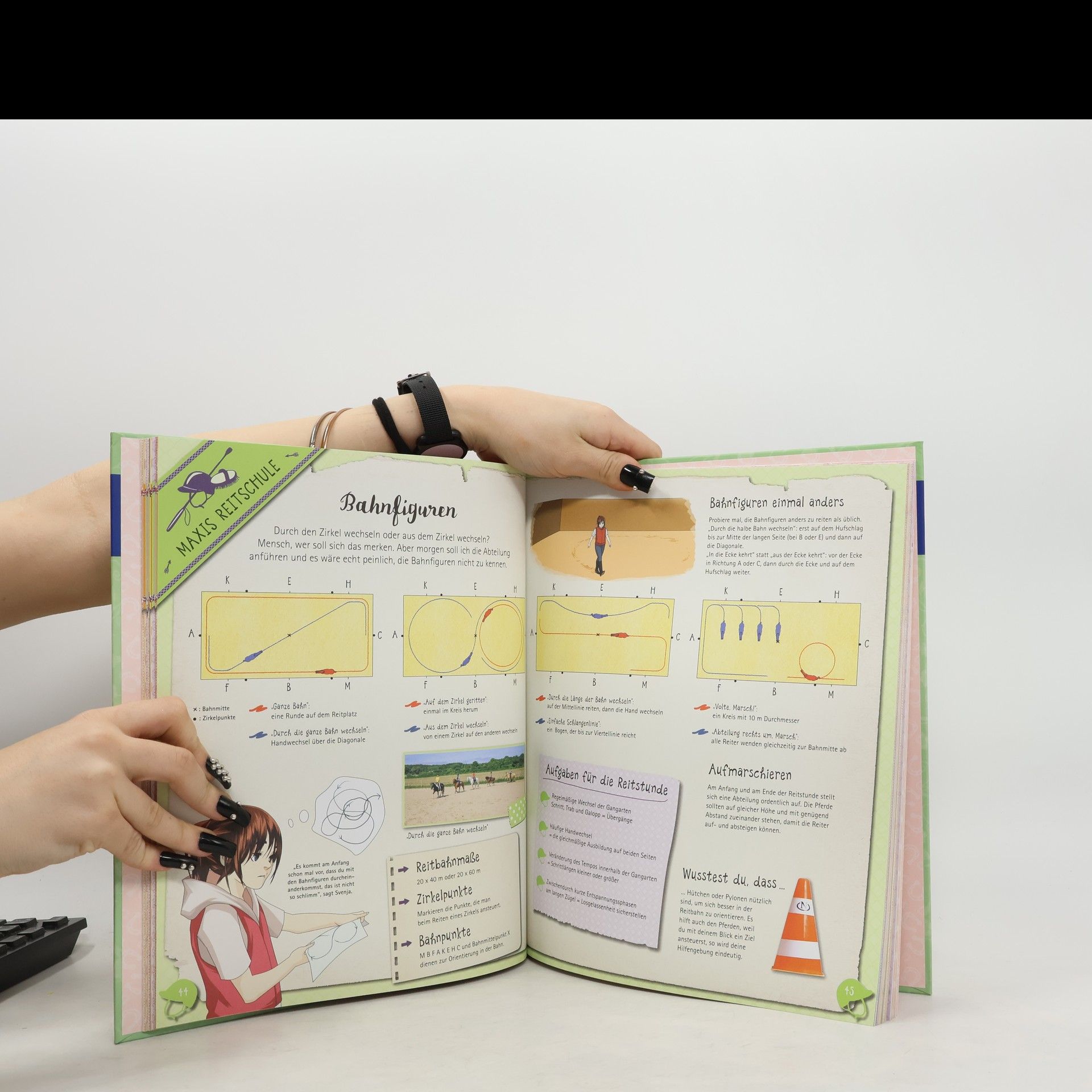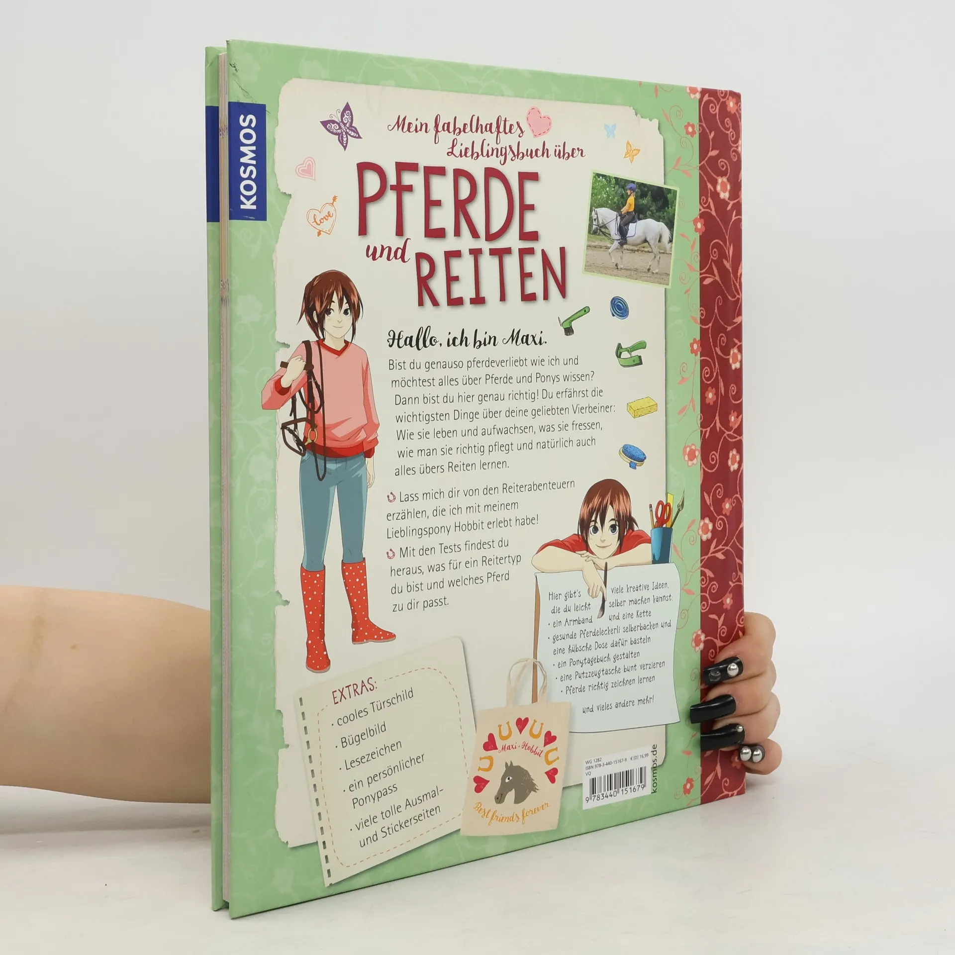 Dieses Mitmachbuch ist ein richtiges Lieblingsbuch für Pferdemädchen: Alles über Pferde und Reiten, spannendes Lesefutter und DIY – alles, wofür sich Mädchen begeistern. Maxi und ihr Pferd Hobbit freuen sich auf die erste Reitstunde und ihre Leserinnen sind hautnah dabei. Zusammen mit den beiden erleben sie spannende Abenteuer und erfahren dabei ganz viel über Rassen, Pferdesprache und Verhalten, wie man richtig Reiten lernt und welche Abzeichen es gibt. Mit Maxis coolen Tests können die Pferdeliebhaberinnen ganz schnell herausfinden welcher Reitertyp sie selbst sind und welches Pferd am besten zu ihnen passt. Außerdem sprudelt Maxi vor kreativen Ideen zum Selbermachen: Pferdeleckerlis, Pferdeschmuck, Putzzeug-Tasche, Stiftehalter im Pony-Style, Pferdetagebuch, ... alles ist ganz leicht nach zu basteln. Zusätzlich enthalten sind pferdestarke Extras wie Sticker, Bügelbild, Türschild und Ausmalseiten.