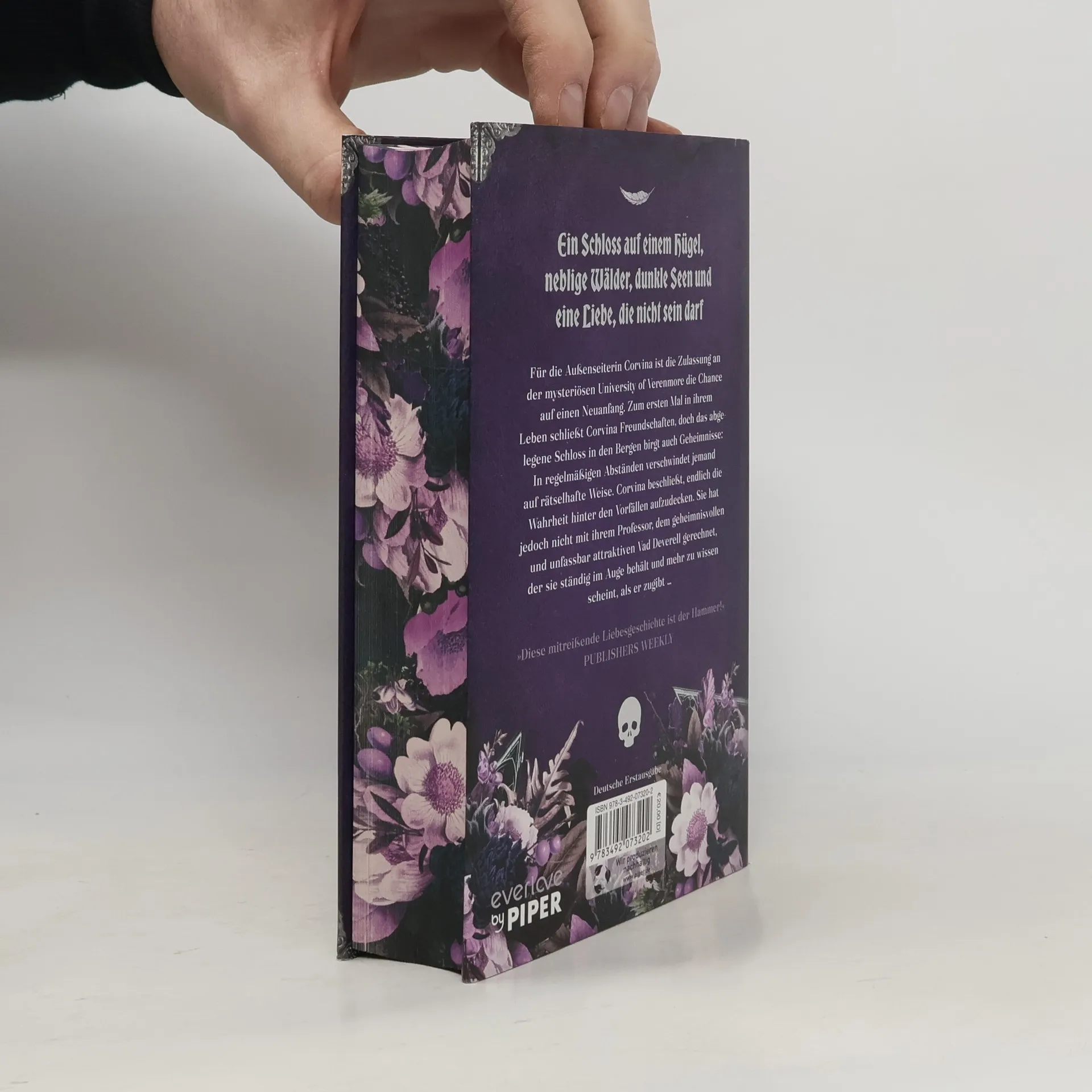 In "Ein Schloss auf einem Hügel" beginnt die Außenseiterin Corvina an der geheimnisvollen University of Verenmore ein neues Leben. Während sie Freundschaften schließt, entdeckt sie, dass das Schloss düstere Geheimnisse birgt, darunter mysteriöse Verschwindungen. Ihr Professor Vad Deverell scheint mehr zu wissen, als er preisgibt.
