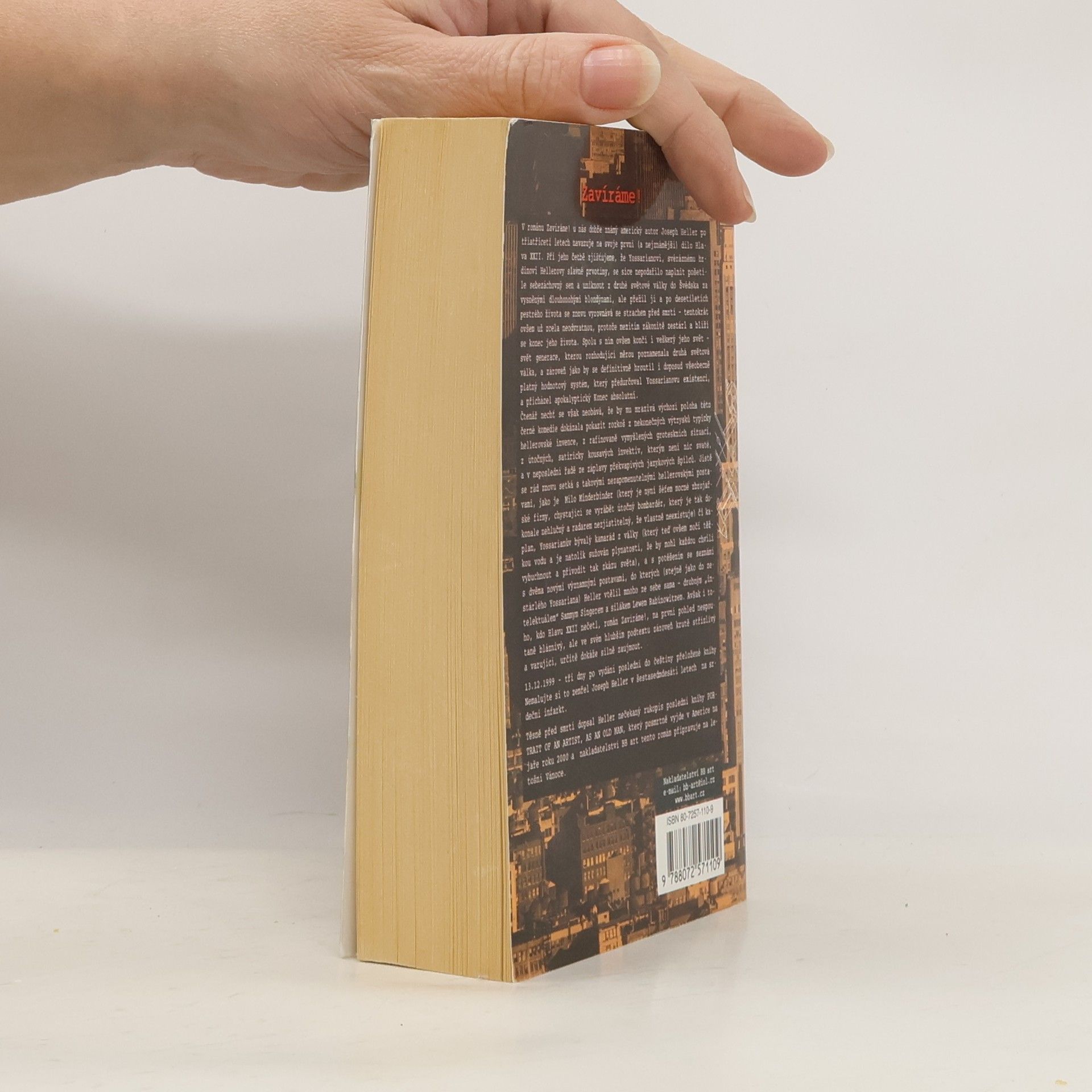 Volné pokračování románu Hlava XXII. Po třiatřiceti letech, po explozivním vstupu Hlavy XXII do světového kulturního povědomí vyhoví Heller prosbám čtenářů a napíše obsáhlé volné pokračování své nejslavnější první práce, kterou nazve ZAVÍRÁME. Opět se setkáváme s hlavním hrdinou Hlavy XXII Yossarianem, který v 80. letech spolu s dalšími postavami nakoukne do novodobé válečné mašinérie.