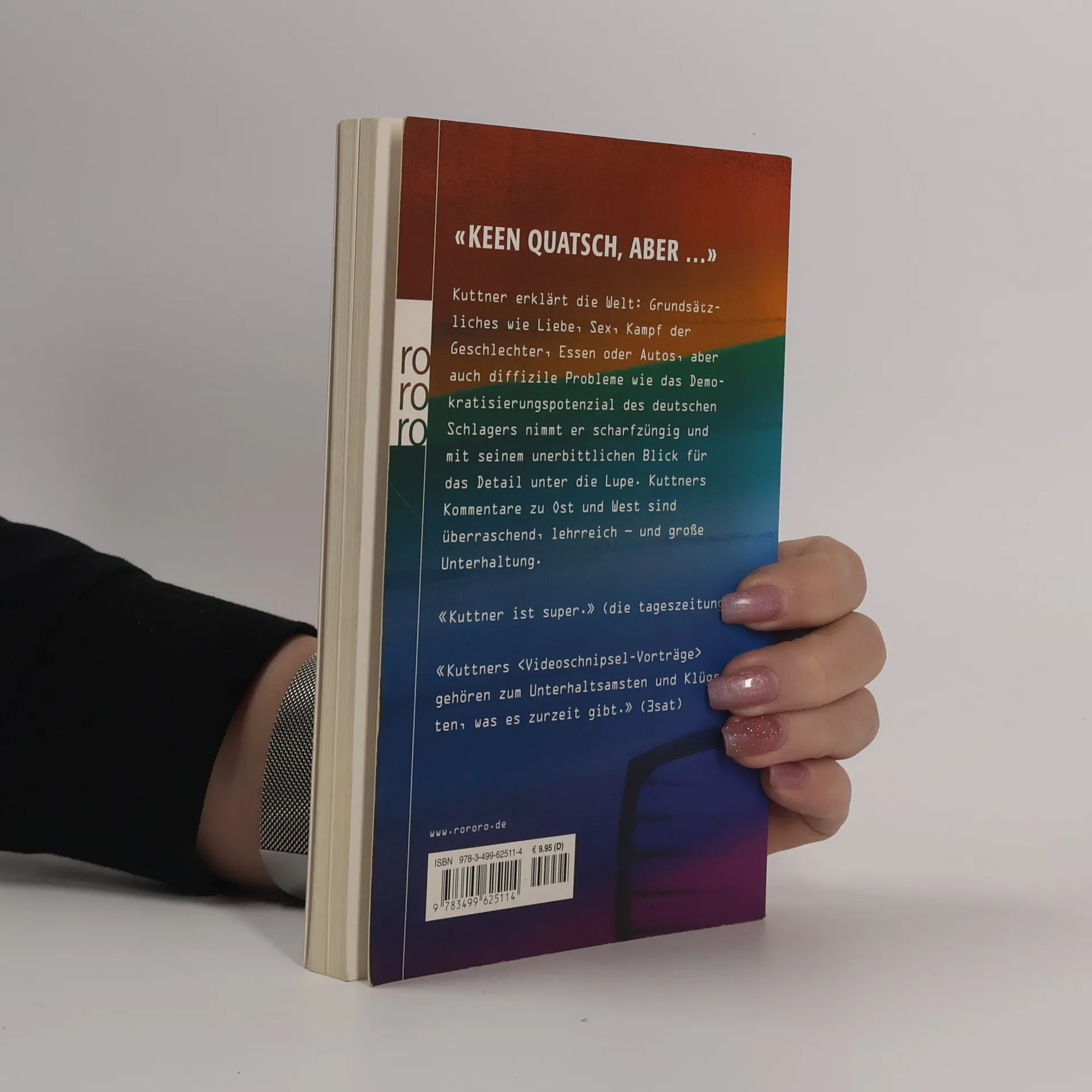 «Keen Quatsch, aber …» Kuttner erklärt die Welt: Grundsätzliches wie Liebe, Sex, Kampf der Geschlechter, Essen oder Autos, aber auch diffizile Probleme wie das Demokratisierungspotenzial des deutschen Schlagers nimmt er scharfzüngig und mit seinem unerbittlichen Blick für das Detail unter die Lupe. Kuttners Kommentare zu Ost und West sind überraschend, lehrreich — und große Unterhaltung. «Kuttner ist super.» (die tageszeitung) «Kuttners ‹Videoschnipsel-Vorträge› gehören zum Unterhaltsamsten und Klügsten, was es zurzeit gibt.» (3sat)