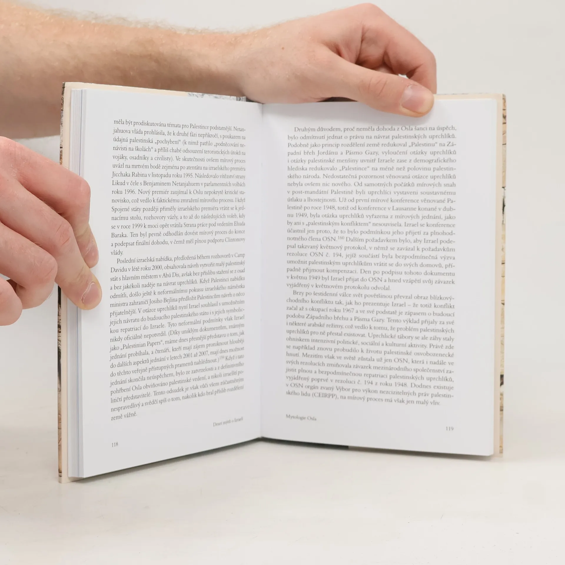 Ilan Pappé je významnou a kontroverzní postavou mezi izraelskými historiky, kteří od osmdesátých let kriticky přehodnocují oficiální výklad izraelských dějin na základě nově zpřístupněných archivních dokumentů. Zaměřuje se především na období založení Státu Izrael v roce 1948 a izraelsko-palestinský konflikt, který stále nemá mírové řešení. Jako radikální člen „nových historiků“ čelil v Izraeli ostrým útokům a výhrůžkám, což ho přimělo k odchodu do Velké Británie, kde působí na Exeterské univerzitě. Ve své knize Pappé vyvrací základní mýty, které tvoří „státní doktrínu“ a oficiální narativ Izraele. Zpochybňuje představu, že Palestina byla před sionisty liduprázdnou krajinou, a demaskuje mýtus o dobrovolném odchodu palestinských uprchlíků v roce 1948. Dále ukazuje, že neexistuje žádná souvislost mezi sionismem a kolonialismem, a dokazuje, že Izrael v roce 1967 neměl na vybranou. Pappé také kritizuje přesvědčení, že Izrael se v rámci mírového procesu snažil o urovnání konfliktu, a koriguje názor, že je demokratickým státem. I když je obviňován z manipulace s fakty, jeho argumenty by měly být vyslyšeny i těmi, kdo s ním nesouhlasí.