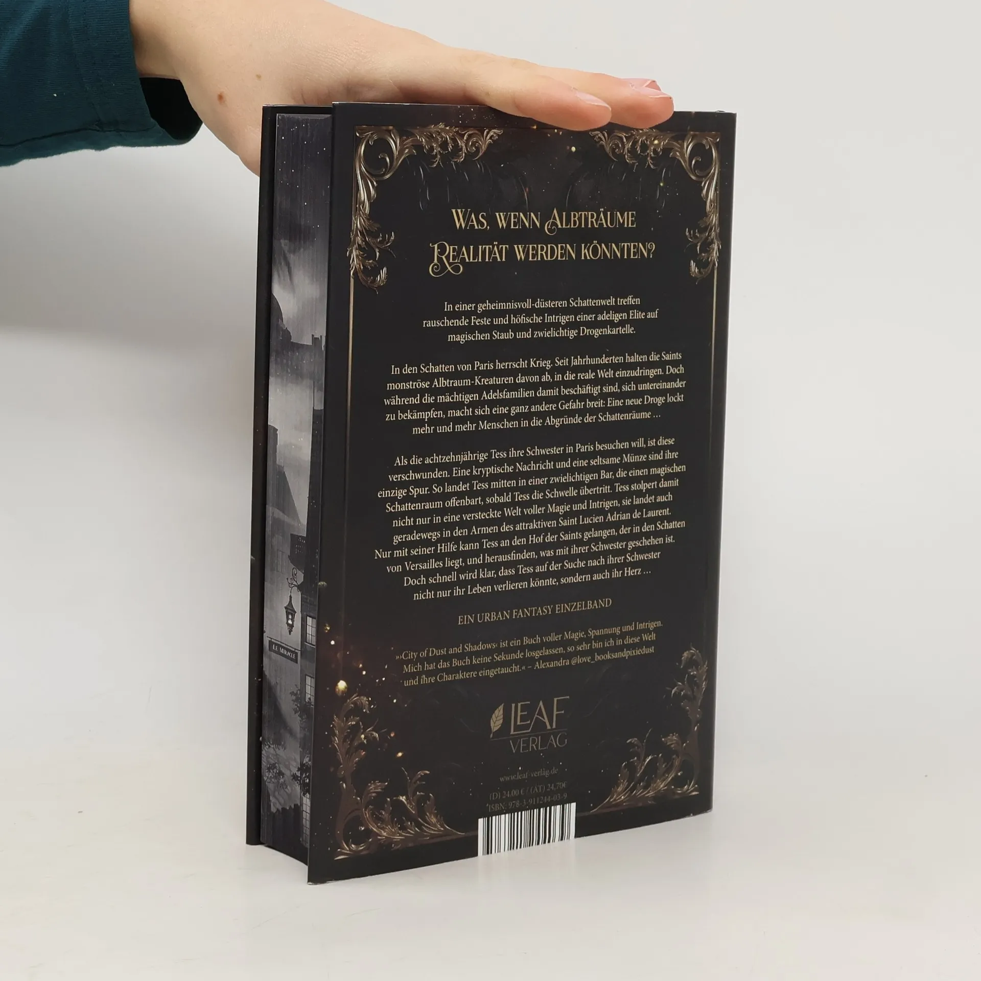 In einer geheimnisvollen Schattenwelt voller Magie und Intrigen sucht die achtzehnjährige Tess ihre verschwundene Schwester in Paris. Dabei trifft sie auf den attraktiven Saint Lucien Adrian de Laurent und entdeckt eine gefährliche Realität, in der Albträume Wirklichkeit werden und eine neue Droge die Menschen verführt.