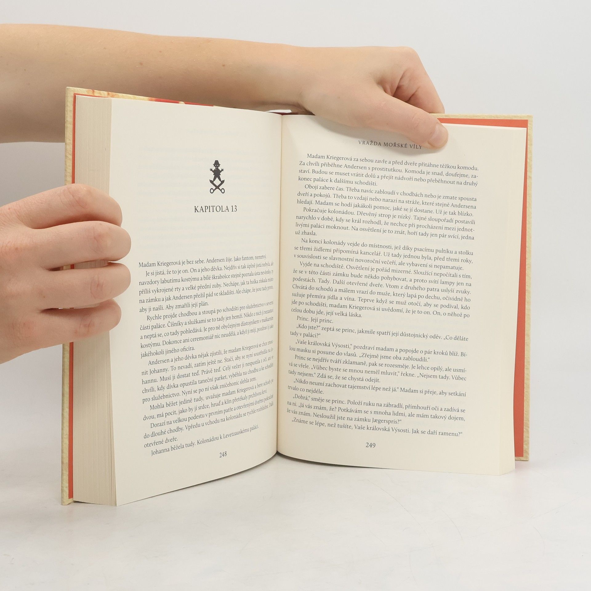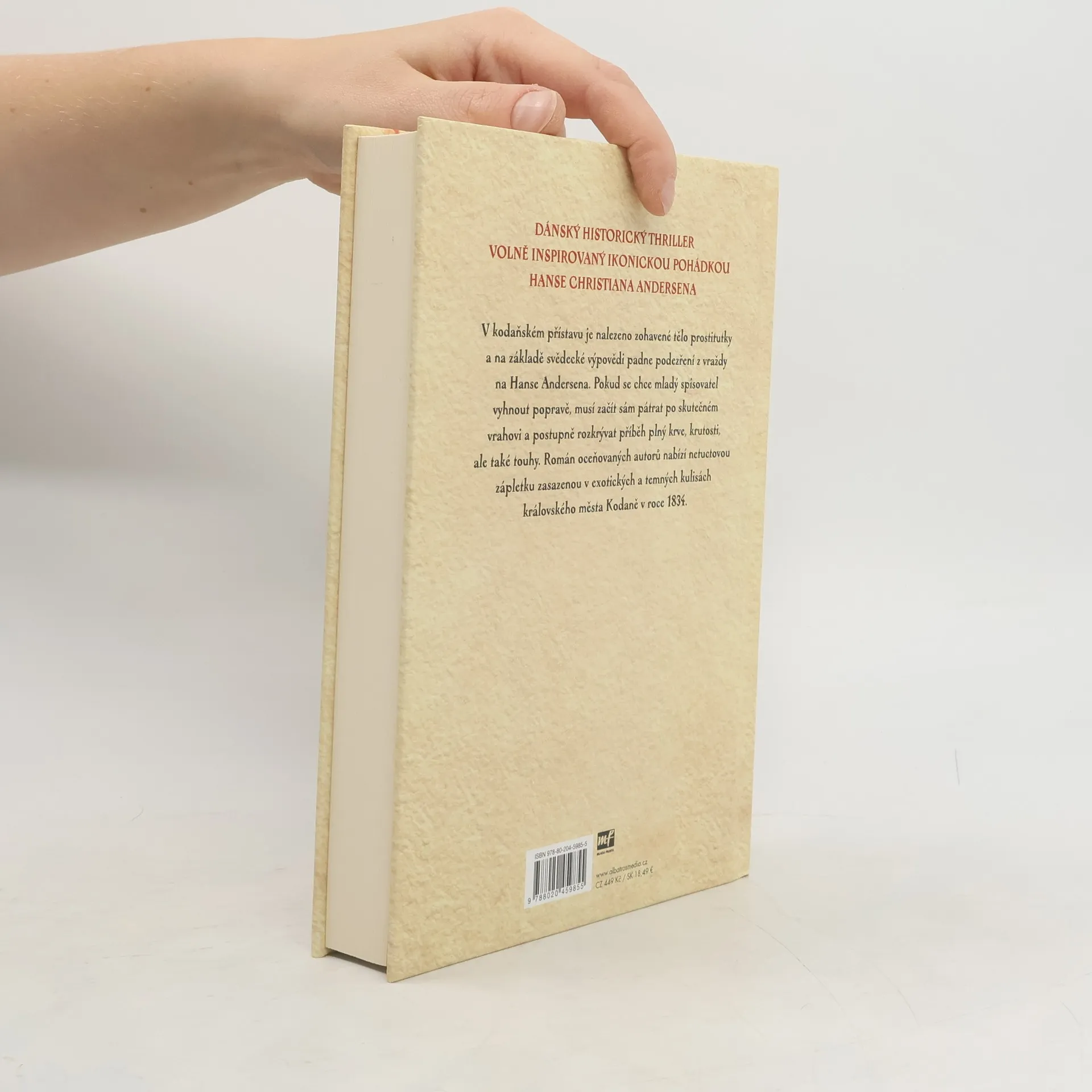 V každé pohádce se skrývá noční můra Kodaň 1834. V kodaňském přístavu je nalezeno zohavené tělo prostitutky. Svědkyně okamžitě identifikuje vraha jako Hanse Christiana Andersena, protože ho předchozí noc viděla odcházet z pokoje zavražděné. Andersen se brání: ano, skutečně prostitutku navštívil, ale pouze proto, že mu stála modelem pro papírové vystřihovánky. Policejní šéf mu nevěří a jen díky tomu, že má Hans Christian ty správné společenské konexe, unikne z vězení a veškeré své odhodlání vloží do hledání toho pravého vraha. Thomasi Rydahlovi vyšel v češtině jeho asi nejznámější román Poustevník; pod pseudonymem A. J. Kazinski se skrývají dva autoři, dánský scénárista a režisér Anders Klarlund a dánský autor knih pro děti a mládež Jakob Weireich. V roce 2010 společně napsali mezinárodně velmi úspěšný thriller Poslední dobrý muž. Tito autoři spolu s Thomasem Rydahlem zaručují, že vzniklá kniha bude všechno, jenom ne typická. Román nabízí exotický obraz královského přístavního města Kodaně na začátku 19. století, syrovou linku hledání brutálního sériového vraha i ozvuky zlidovělé pohádky o malé mořské víle. Co kdyby Andersen svým geniálním a zároveň podivínským mozkem pomáhal policii řešit strašlivé zločiny? Co kdyby jeho slavné pohádky byly ve skutečnosti založeny na vraždách spáchaných ve 30. letech 19. století?