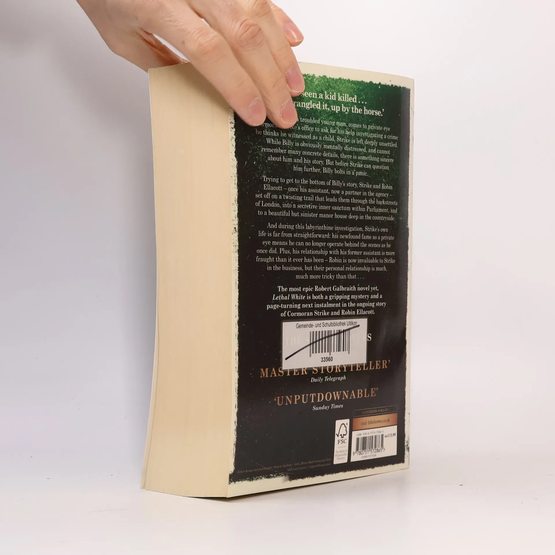 LETHAL WHITE is both a gripping mystery and the page-turning next instalment in the highly acclaimed series featuring Cormoran Strike and Robin Ellacott, written by J.K. Rowling under the pseudonym Robert Galbraith. 'I seen a kid killed . . . He strangled it, up by the horse.' When Billy, a troubled young man, comes to private eye Cormoran Strike's office to ask for his help investigating a crime he thinks he witnessed as a child, Strike is left deeply unsettled. While Billy is obviously mentally distressed, and cannot remember many concrete details, there is something sincere about him and his story. But before Strike can question him further, Billy bolts from his office in a panic. Trying to get to the bottom of Billy's story, Strike and Robin Ellacott - once his assistant, now a partner in the agency - set off on a twisting trail that leads them through the backstreets of London, into a secretive inner sanctum within Parliament, and to a beautiful but sinister manor house deep in the countryside. And during this labyrinthine investigation, Strike's own life is far from straightforward: his newfound fame as a private eye means he can no longer operate behind the scenes as he once did. Plus, his relationship with his former assistant is more fraught than it ever has been - Robin is now invaluable to Strike in the business, but their personal relationship is much, much more tricky than that . . .
