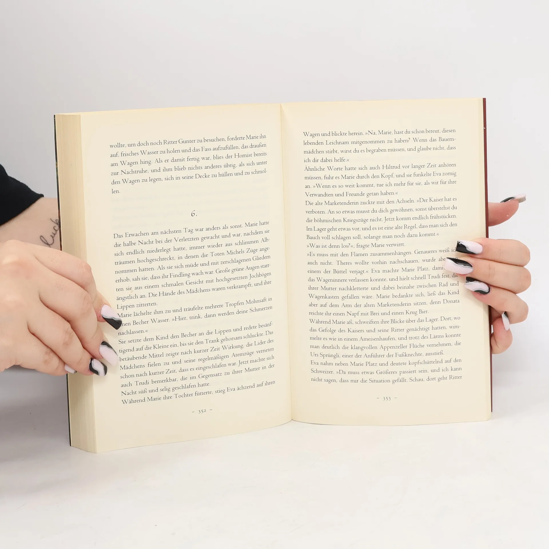 Marie lebt zufrieden mit ihrem Ehemann Michel Adler, den sie innig liebt. Ihr Glück scheint vollkommen, als sie ein Kind erwartet. Doch dann muss Michel in den Kampf gegen die aufständischen Hussiten ziehen. Er beweist so viel Mut, dass er zum Ritter geschlagen wird - und verschwindet nach einem grausamen Gemetzel spurlos. Nachdem er für tot erklärt wird, ist Marie ganz auf sich allein gestellt und sieht sich täglich neuen Demütigungen ausgesetzt. Schließlich bleibt ihr nur ein Ausweg: Sie muss von ihrer Burg fliehen. Marie hat die Hoffnung nicht aufgegeben, dass Michel noch leben könnte, und schließt sich als Marketenderin einem neuen Heerzug an. Es beginnt das Abenteuer ihres Lebens. Wird sie den geliebten Mann jemals wieder finden?
