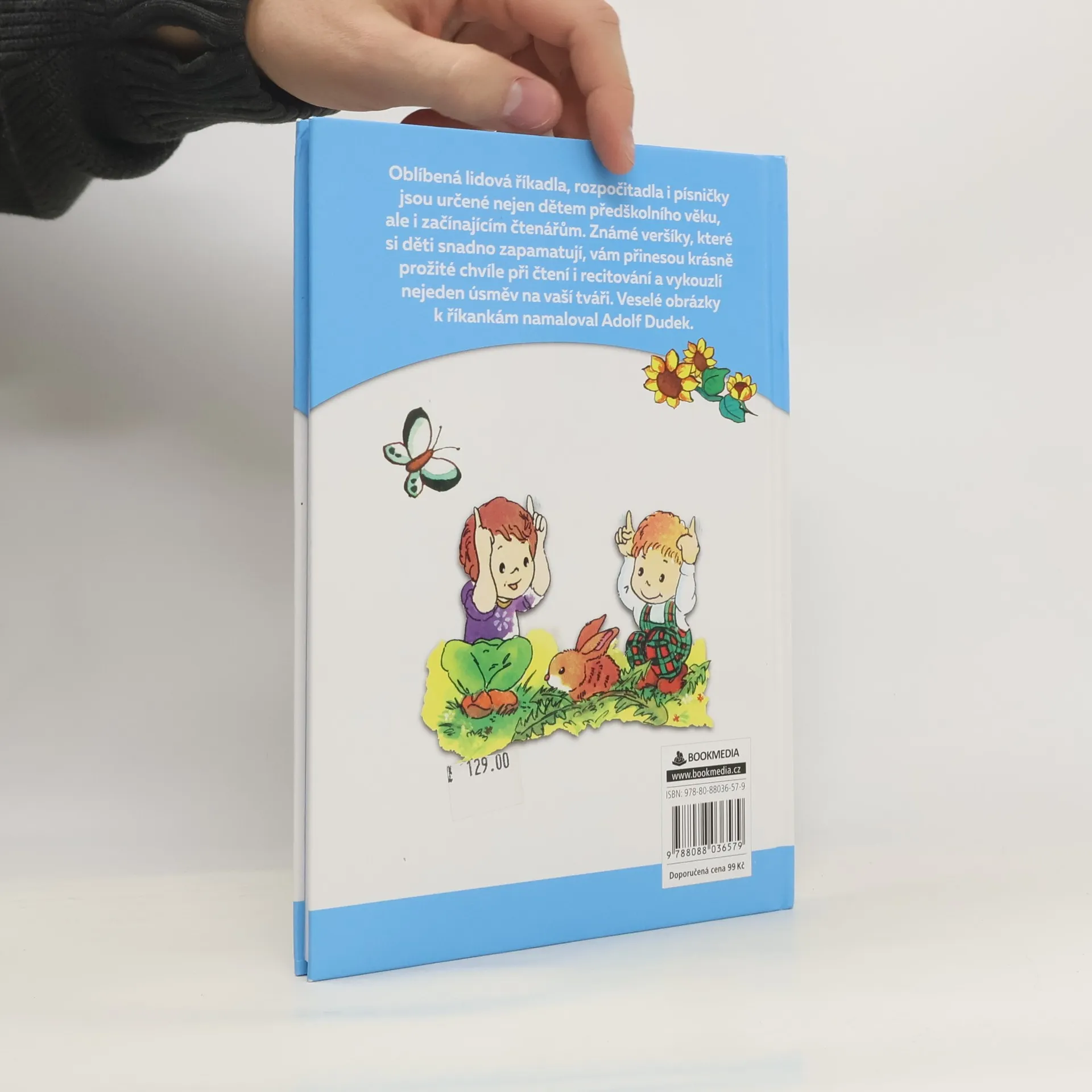 Oblíbená lidová říkadla, rozpočítadla i písničky jsou určené nejen dětem předškolního věku, ale i začínajícím čtenářům. Známé veršíky, které si děti snadno zapamatují, vám přinesou krásně prožité chvíle při čtení i recitování a vykouzlí nejeden úsměv na vaší tváři. Veselé obrázky k říkankám namaloval Adolf Dudek.