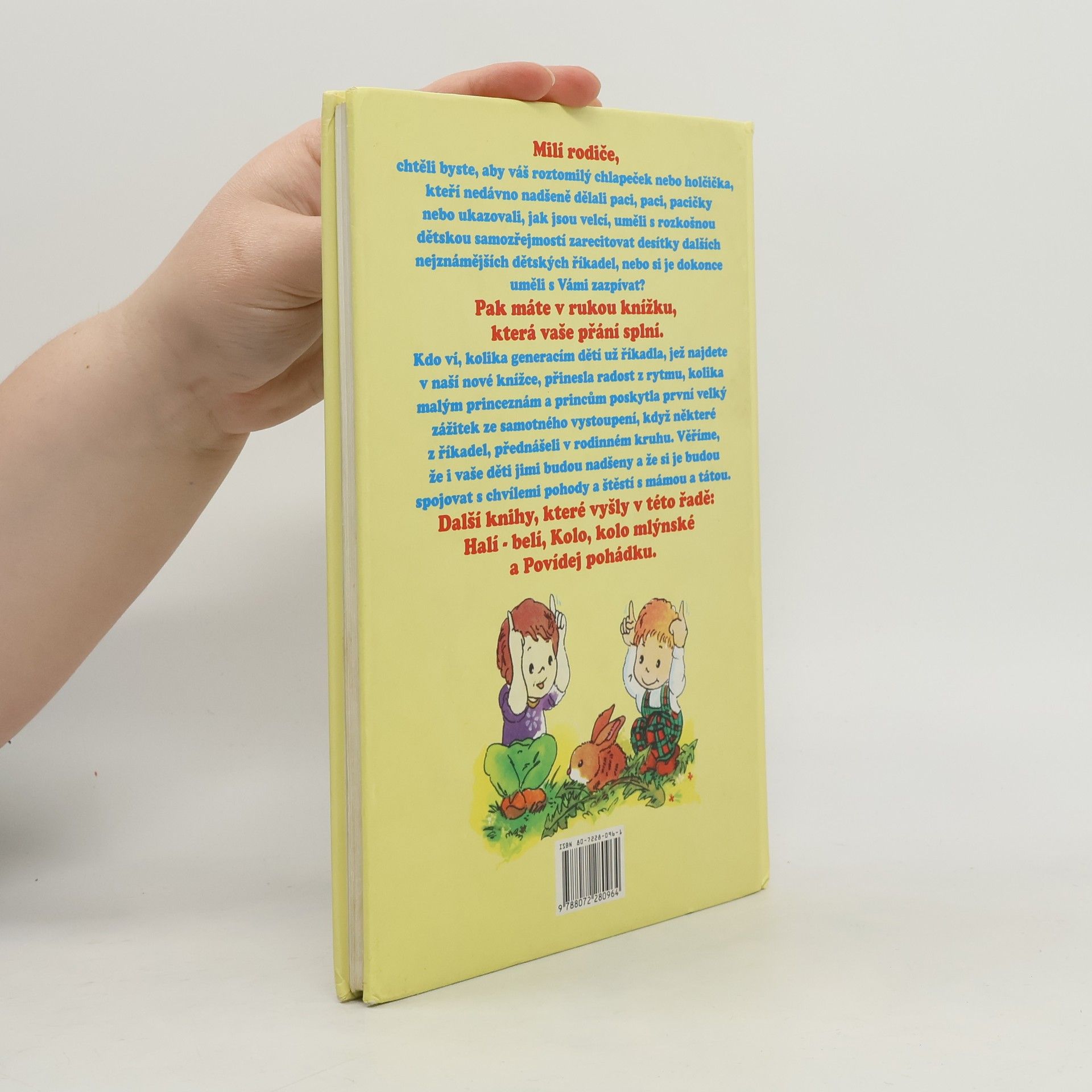 Knížka známých lidových říkadel a písniček, bohatě ilustrovaná, je určena nejmenším dětem.