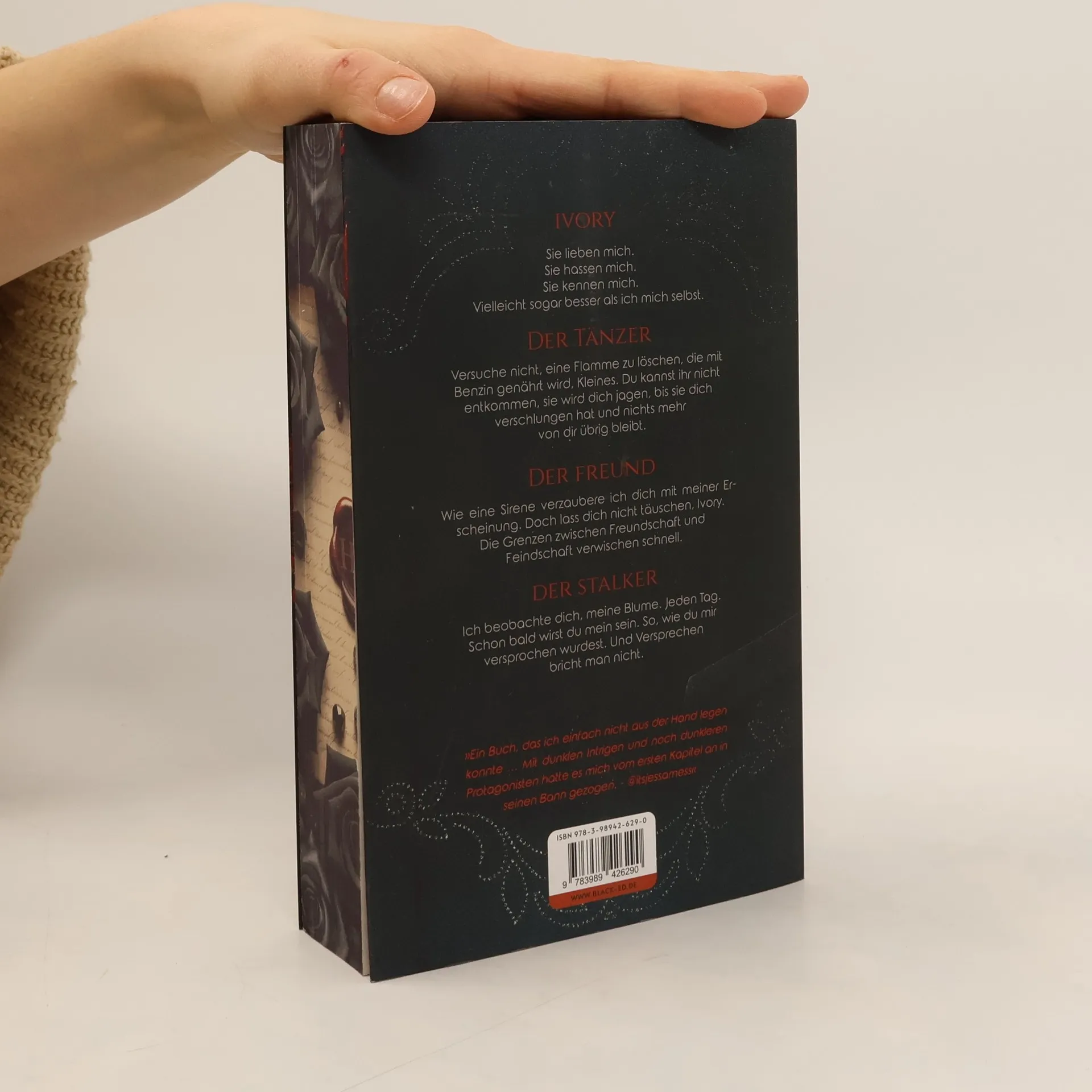 Ivy kommt neu auf die Southside Academy. An dieser Schule waren schon ihre Vorfahren. Dort trifft sie auf die mysteriöse Camilla und zwei ebenso mysteriöse Brüder. Bald schon findet sie heraus, dass sie der Schlüssel zu einem uralten Familiengeheimnis ist. Cover: Das Cover ist sehr schön gemacht. Der Hintergrund ist schwarz. In der Mitte des Covers sieht man außerdem Flammen, passend zum Titel des Buches. Darauf steht der Buchtitel. Oben drüber ist das Wappen der Southside Academy abgebildet. Unten am Rand in der Mitte steht der Name der Autorin und rechts daneben das Logo des Verlages. Meinung: Ich fand das Buch toll und kann einige Kritiken nicht verstehen. Für ihr Debüt ist das Buch sehr gut geschrieben. Auch fand ich es gut, dass es auch ein paar Kapitel aus den Perspektiven der anderen Charaktere gab. Leider fand ich, war es teilweise etwas langgezogen, da ich Mühe und Not hatte, das Buch fertig zu bekommen. Darum gibt es 4 von 5 Sterne