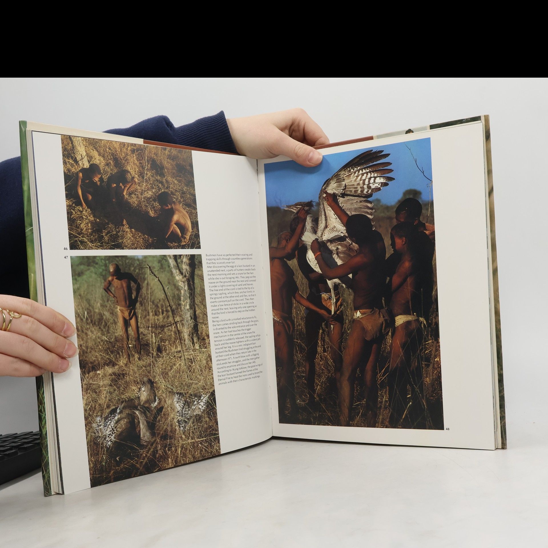 The last Kalahari Bushmen are gradually vanishing, drawn into the currents of modern civilization. The author and photographers embarked on a mission to find the few remaining Bushmen who still live as their ancestors did for the past 20,000 years. Their journey led them to a people who exist harmoniously with their environment, embodying the rhythms of nature in their daily lives, folklore, rituals, and cosmology. While our ancestors chose a path of conquest, the Bushmen represent an alternative way of living in balance with the earth. The photographers discovered much that resonated with their own ideals in these gentle, resourceful individuals, who are deeply attuned to their surroundings. However, the Bushmen are shy and reluctant to open up to outsiders. It took months of living among them, sharing campfires and hardships, participating in hunts, and enduring a ration of muddy water each day before the photographers could capture an intimate portrayal of these extraordinary people. This work serves as a testament to the last of the Bushmen living as hunter-gatherers, preserving a way of life that is slowly fading from existence.