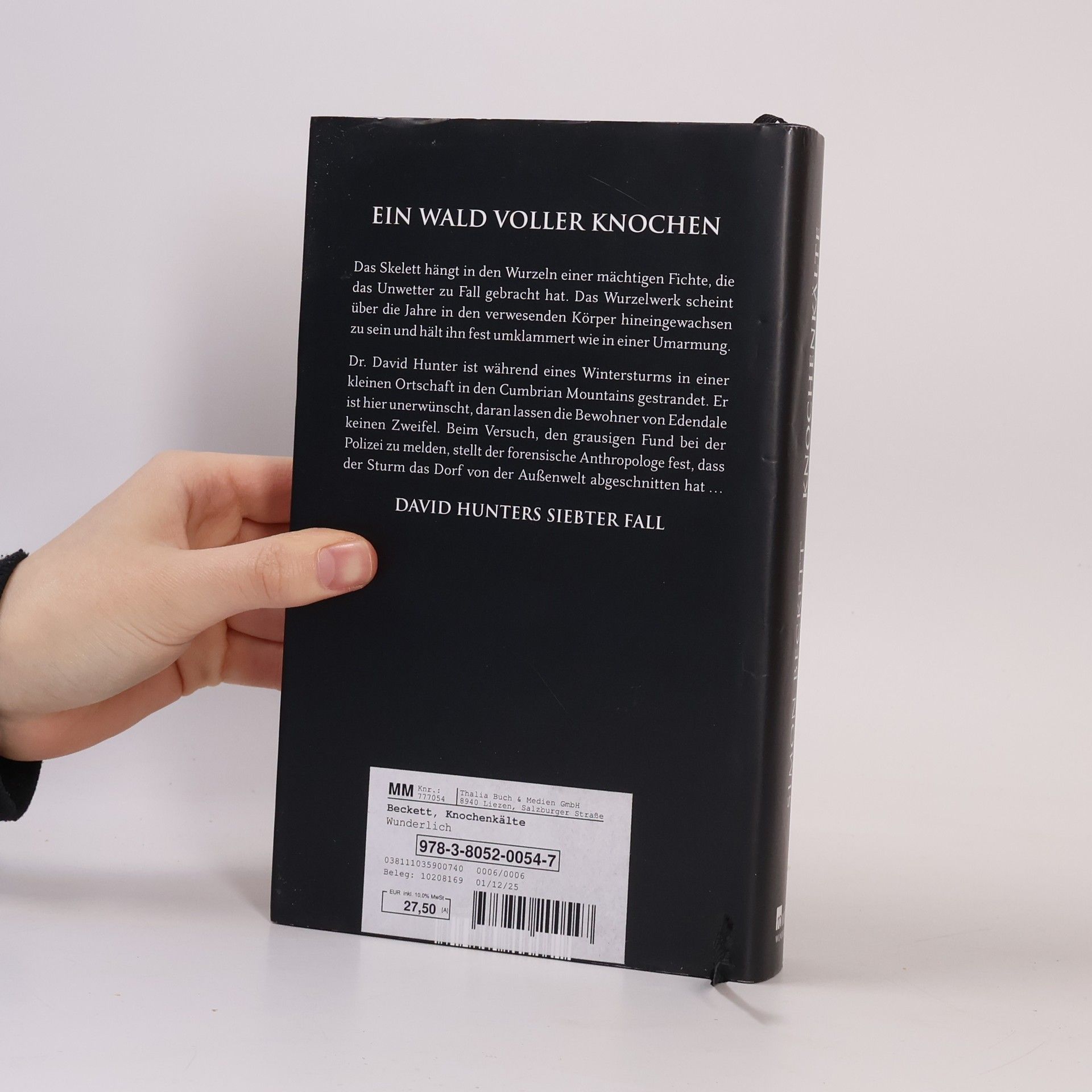 Inmitten eines Wintersturms ist Dr. David Hunter im Forest Hotel in Wales gestrandet. Umgeben von unheimlichem Nebel und kalter Einsamkeit macht er eine grausige Entdeckung im Wald. Die Polizei zu alarmieren wird schwierig, da der Sturm das Dorf abgeriegelt hat. Teil 7 der Bestsellerreihe von Simon Beckett.