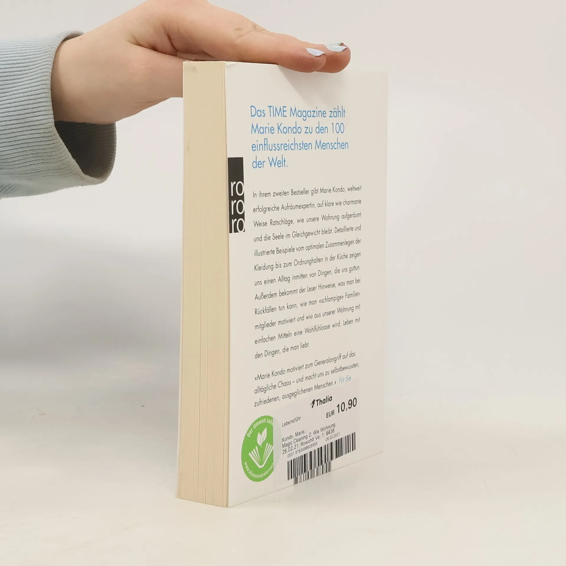 Das TIME Magazine zählt Marie Kondo zu den 100 einflussreichsten Menschen auf der Welt! In ihrem zweiten Bestseller gibt Marie Kondo, weltweit erfolgreiche Aufräumexpertin, auf klare wie charmante Weise Ratschläge, wie unsere Wohnung aufgeräumt und die Seele im Gleichgewicht bleibt. Detaillierte und illustrierte Beispiele vom optimalen Zusammenlegen der Kleidung bis zum Ordnunghalten in der Küche zeigen uns einen Alltag inmitten von Dingen, die uns guttun. Außerdem bekommt der Leser Hinweise, was man bei Rückfällen tun kann, wie man «schlampige» Familienmitglieder motiviert und wie aus unserer Wohnung mit einfachen Mitteln eine Wohlfühloase wird. Leben mit den Dingen, die man liebt. «Marie Kondo motiviert zum Generalangriff auf das alltägliche Chaos – und macht uns zu selbstbewussten, zufriedenen, ausgeglichenen Menschen.» Für Sie