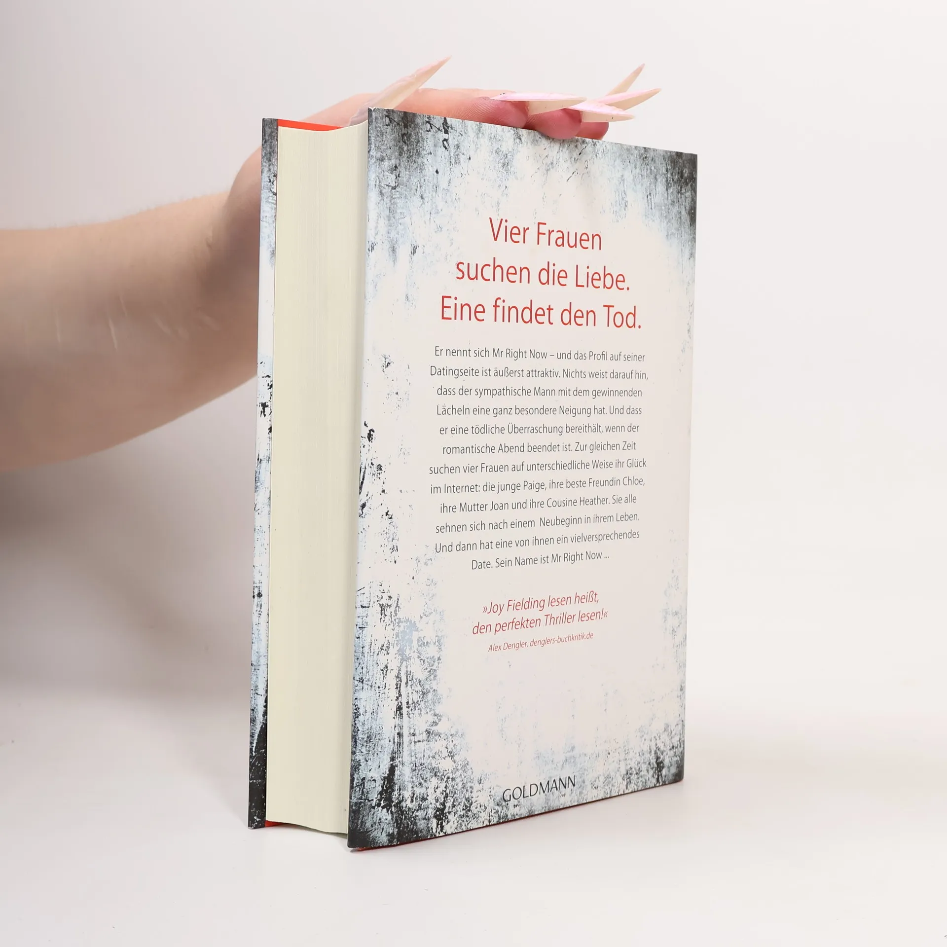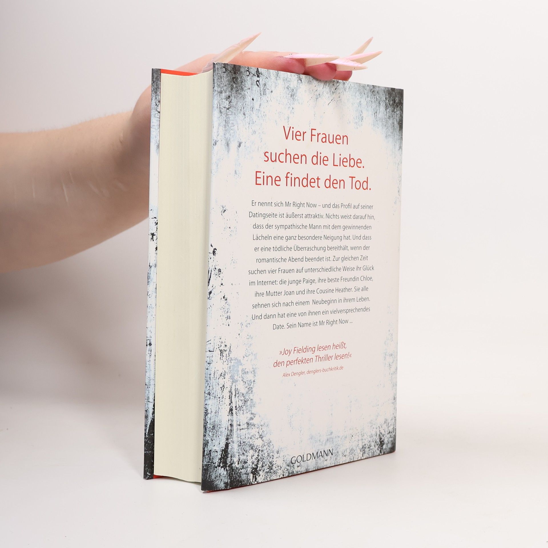Vier Frauen suchen die Liebe. Eine findet den Tod. Er nennt sich Mr Right Now – und das Profil auf seiner Datingseite ist äußerst attraktiv. Nichts weist darauf hin, dass der sympathische Mann mit dem gewinnenden Lächeln eine ganz besondere Neigung hat. Und dass er eine tödliche Überraschung bereithält, wenn der romantische Abend beendet ist. Zur gleichen Zeit suchen vier Frauen auf unterschiedliche Weise ihr Glück im Internet: die junge Paige, ihre beste Freundin Chloe, ihre Mutter Joan und ihre Cousine Heather. Sie alle sehnen sich nach einem Neubeginn in ihrem Leben. Und dann hat eine von ihnen ein vielversprechendes Date. Sein Name ist Mr Right Now …